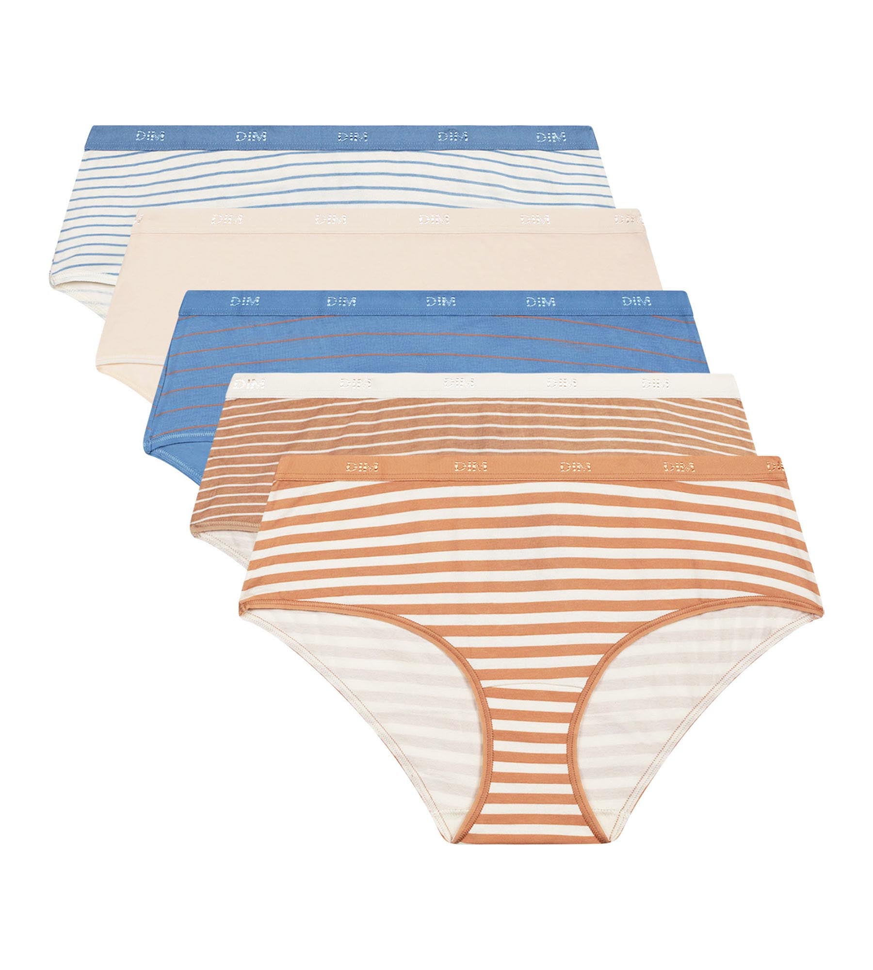Pacco da 5 Shorty Les Pockets da donna in cotone elasticizzato blu beige a righe