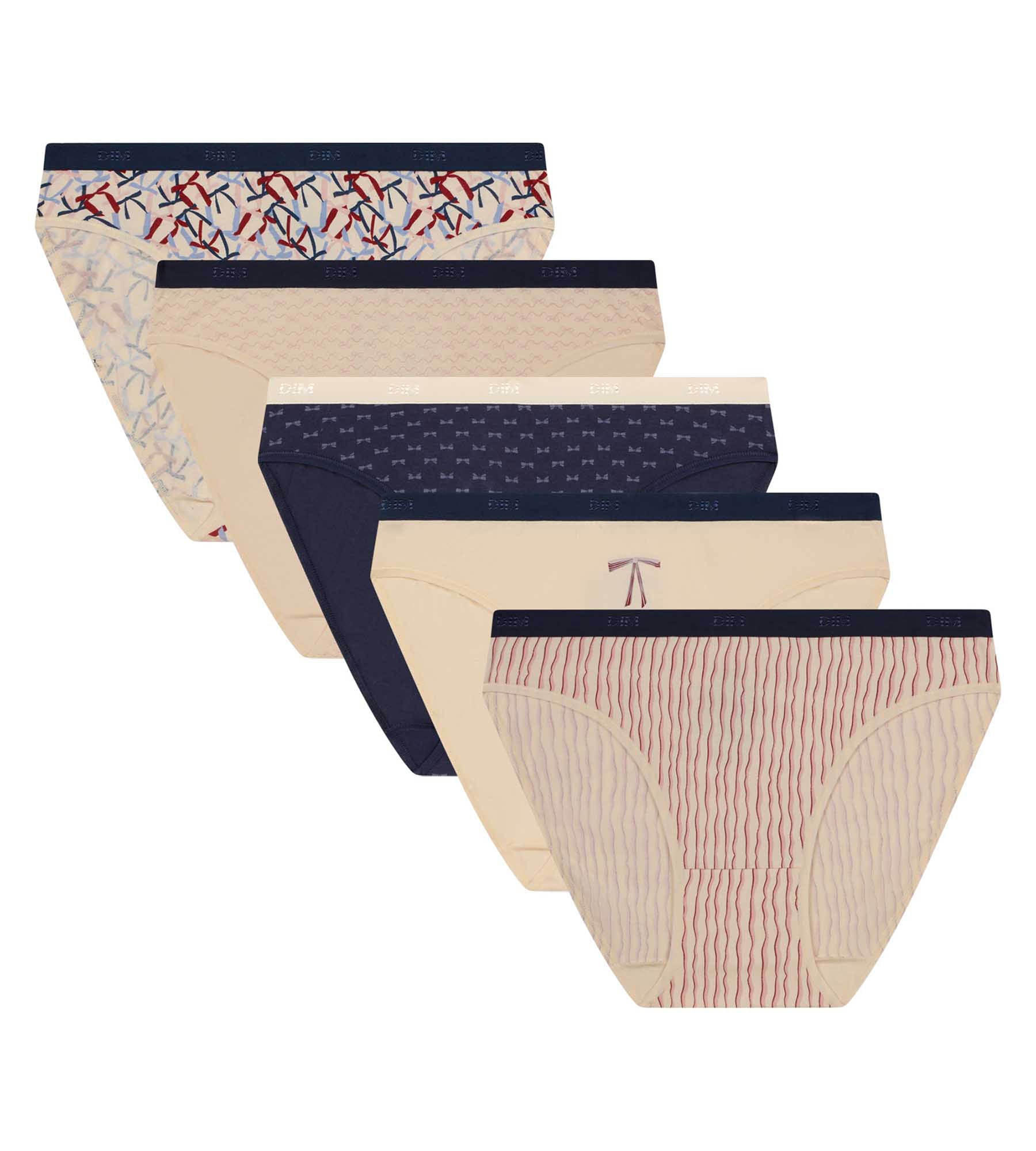 Aggiungi un tocco di fantasia alla tua vita quotidiana con questo set di 5 slip da donna Dim Les Pockets con motivo grafico a nastro.