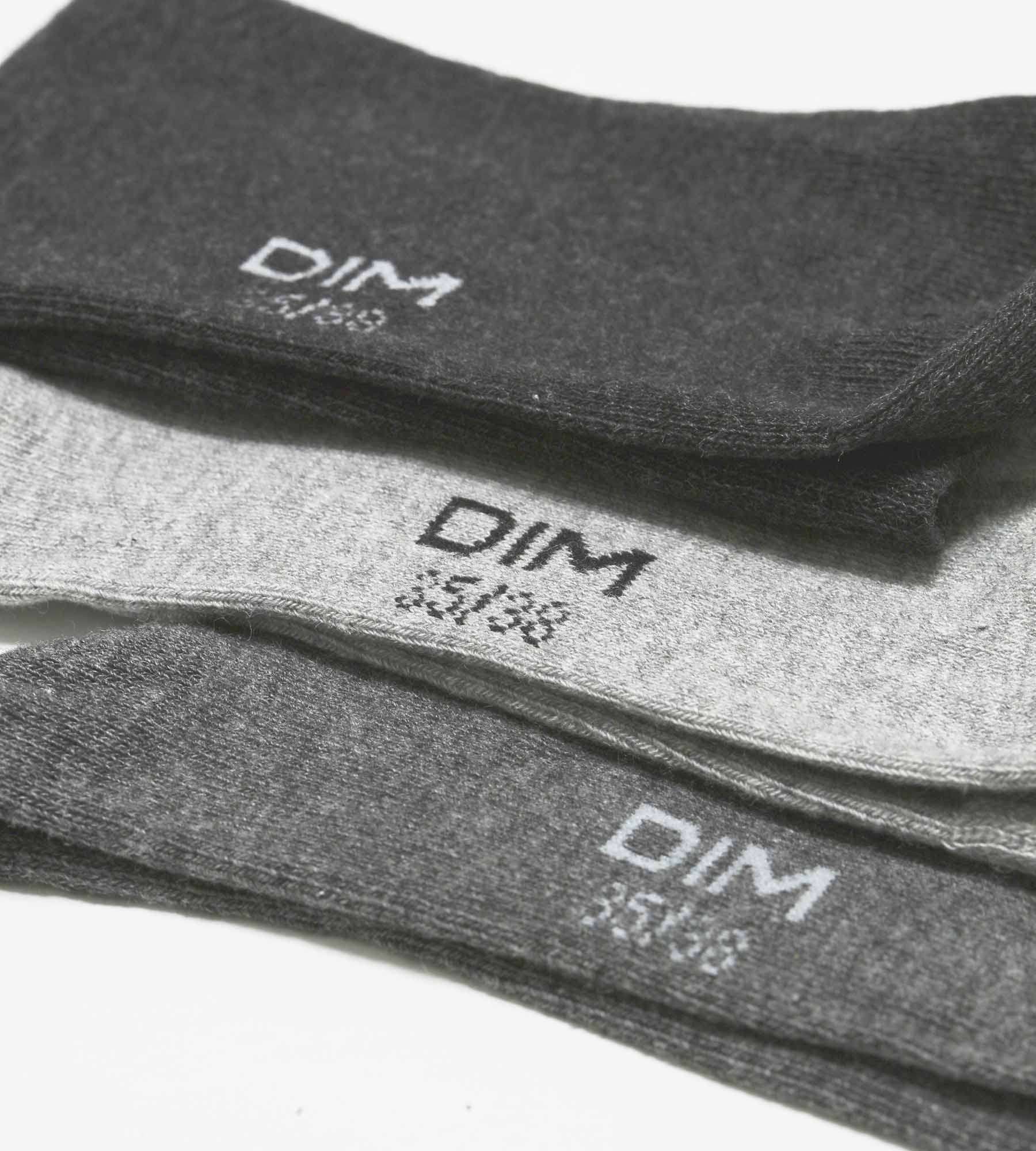 Composto da 3 paia di calze tinta unita da donna Grigio chiaro in morbidissimo cotone pettinato, il set di Dim Coton è IL basic casual senza tempo da indossare ogni giorno! Con il loro design minimalista e la finitura elastica, i calzini in cotone Dim Basic di possono essere infilati comodamente sotto tutte le tue calze e scarpe!
