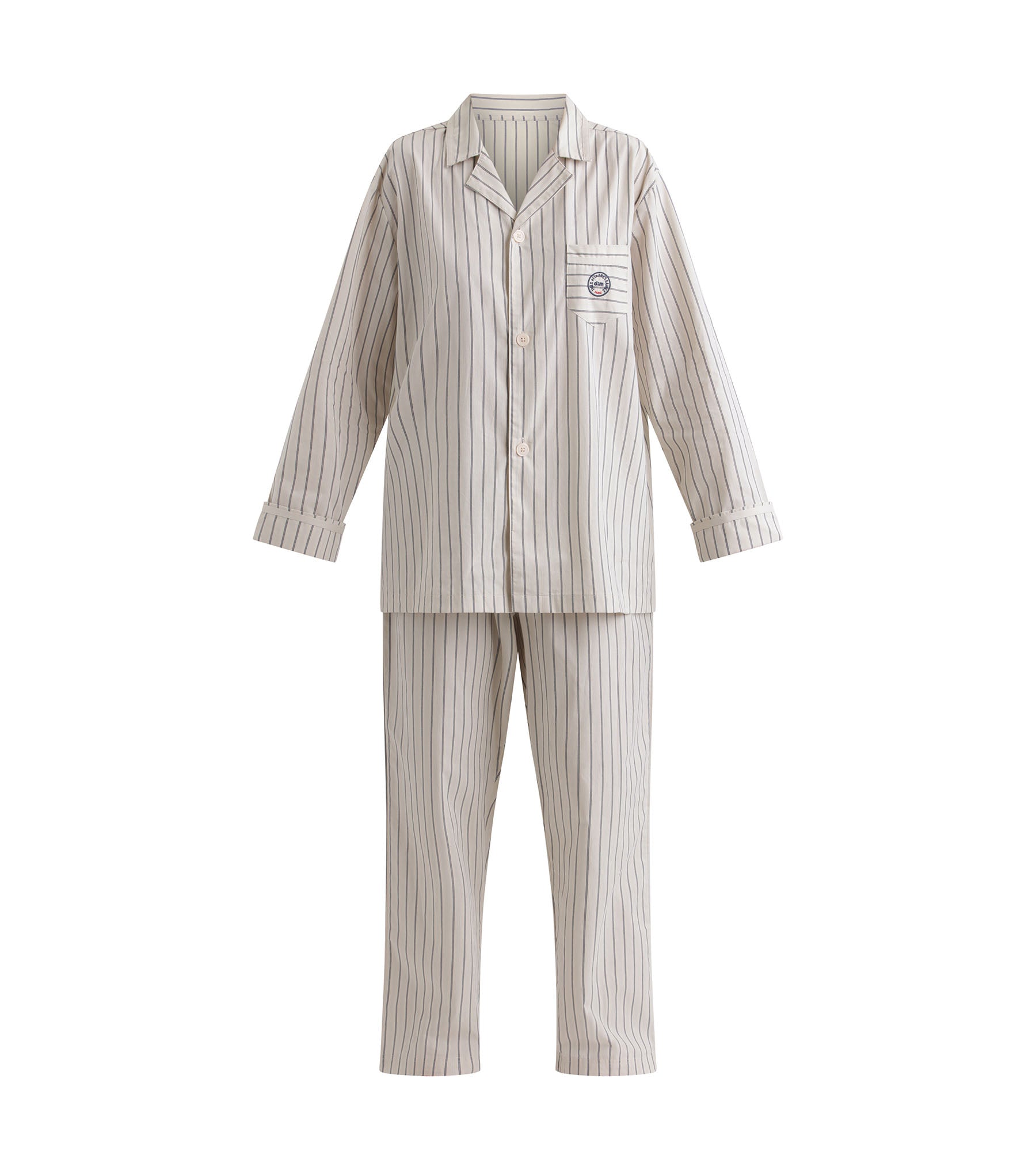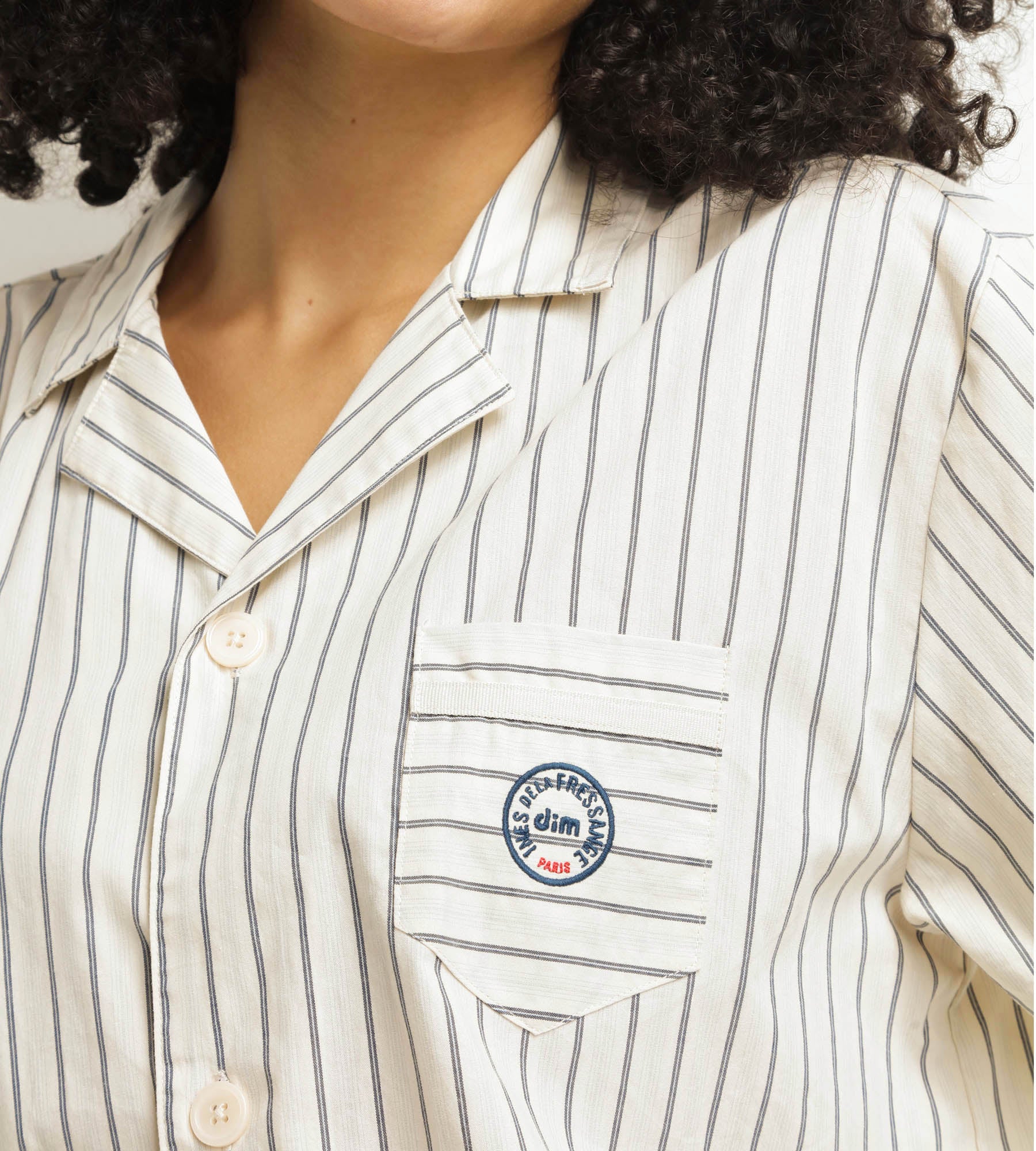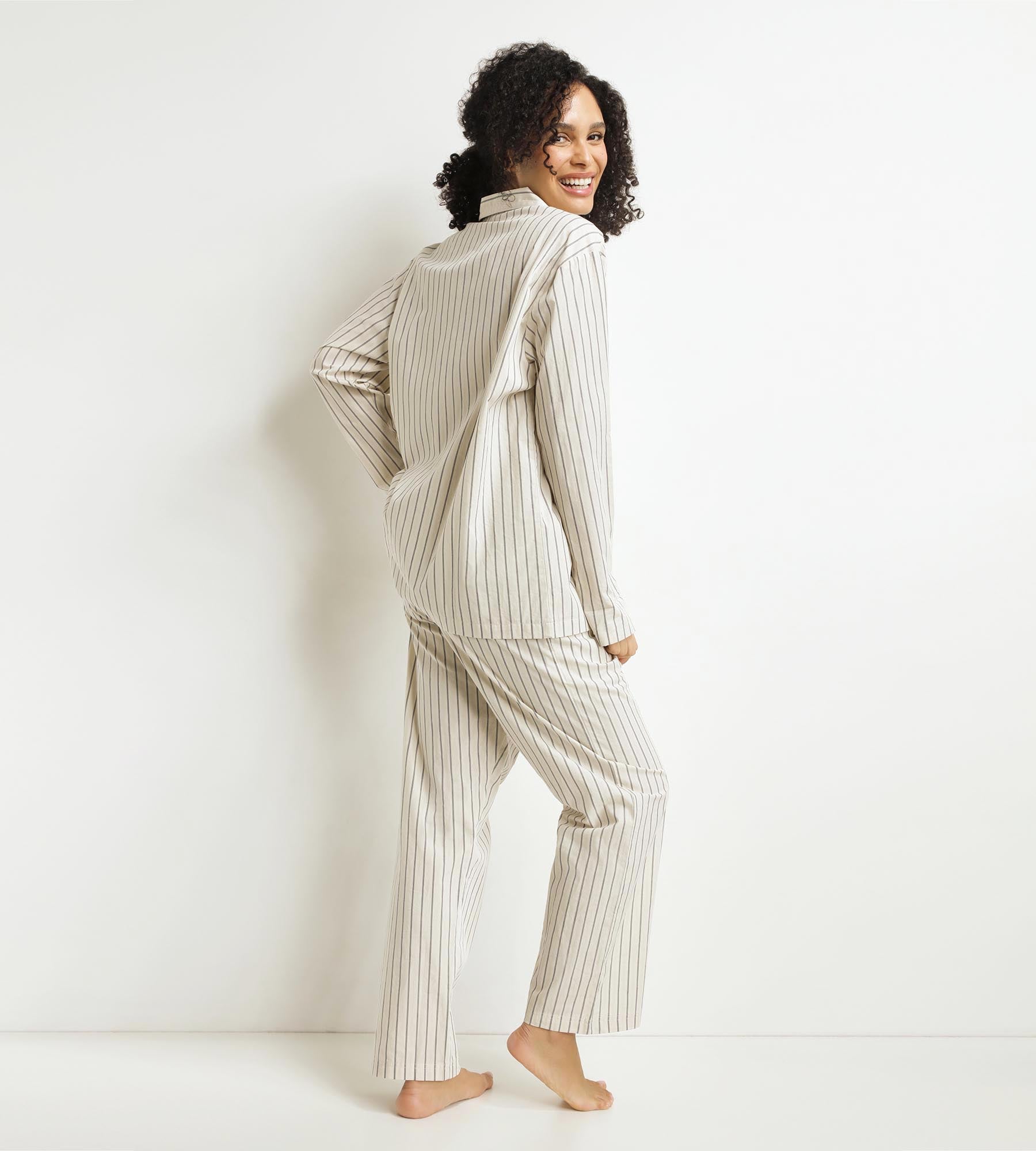 Unisci comfort ed eleganza con il pigiama donna Dim x Inès de La Fressange in popeline grigio a righe.