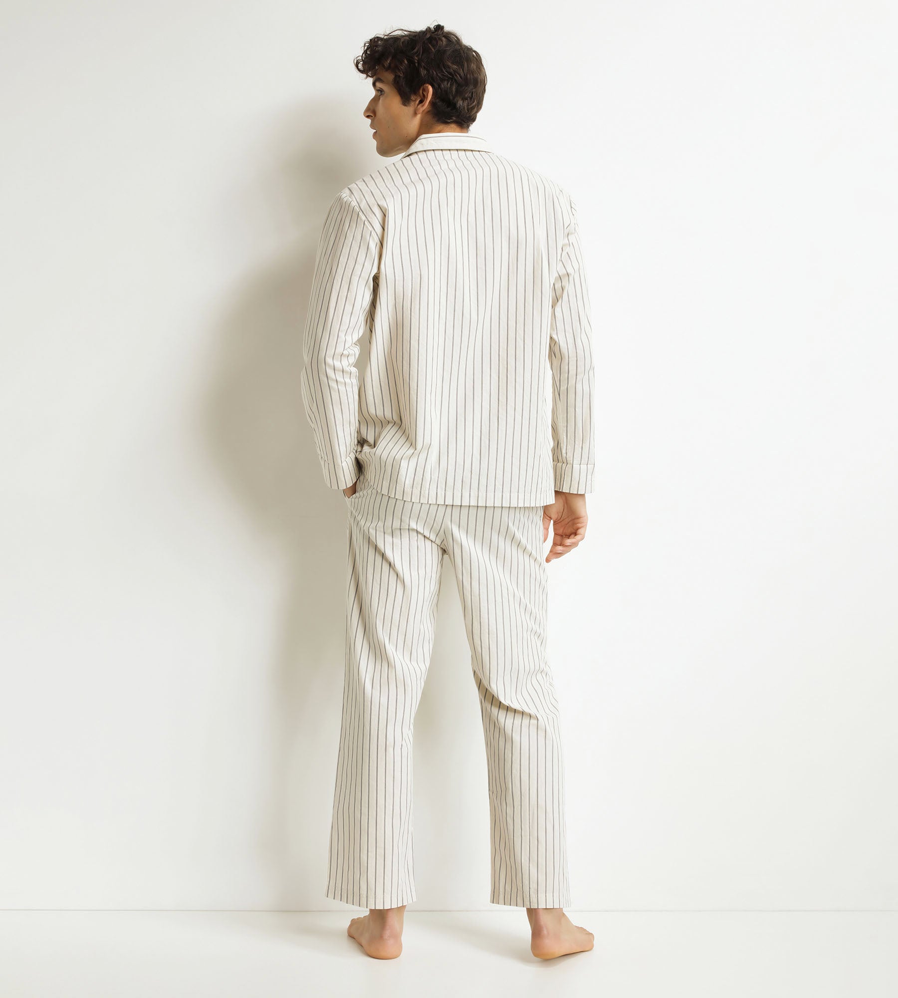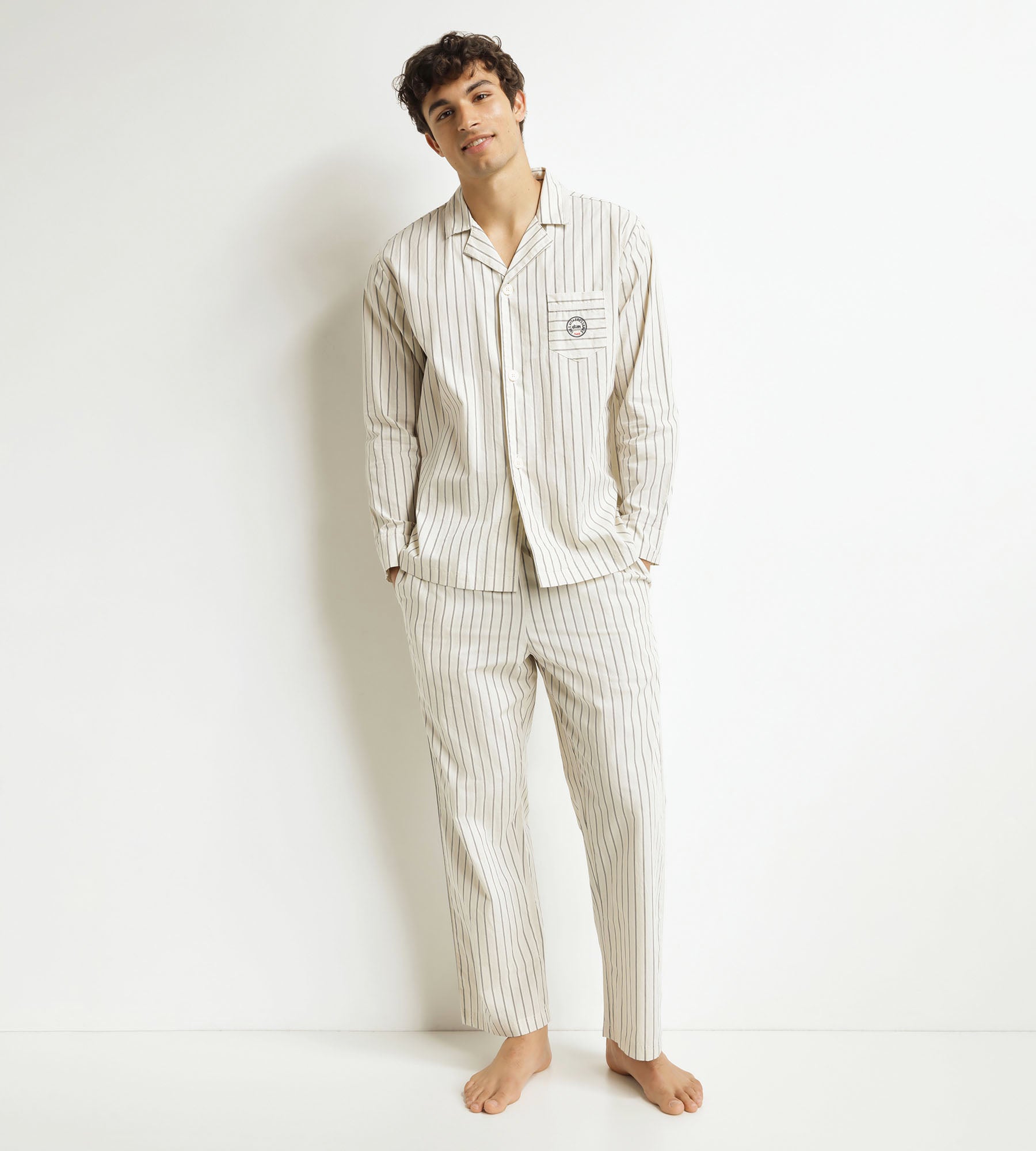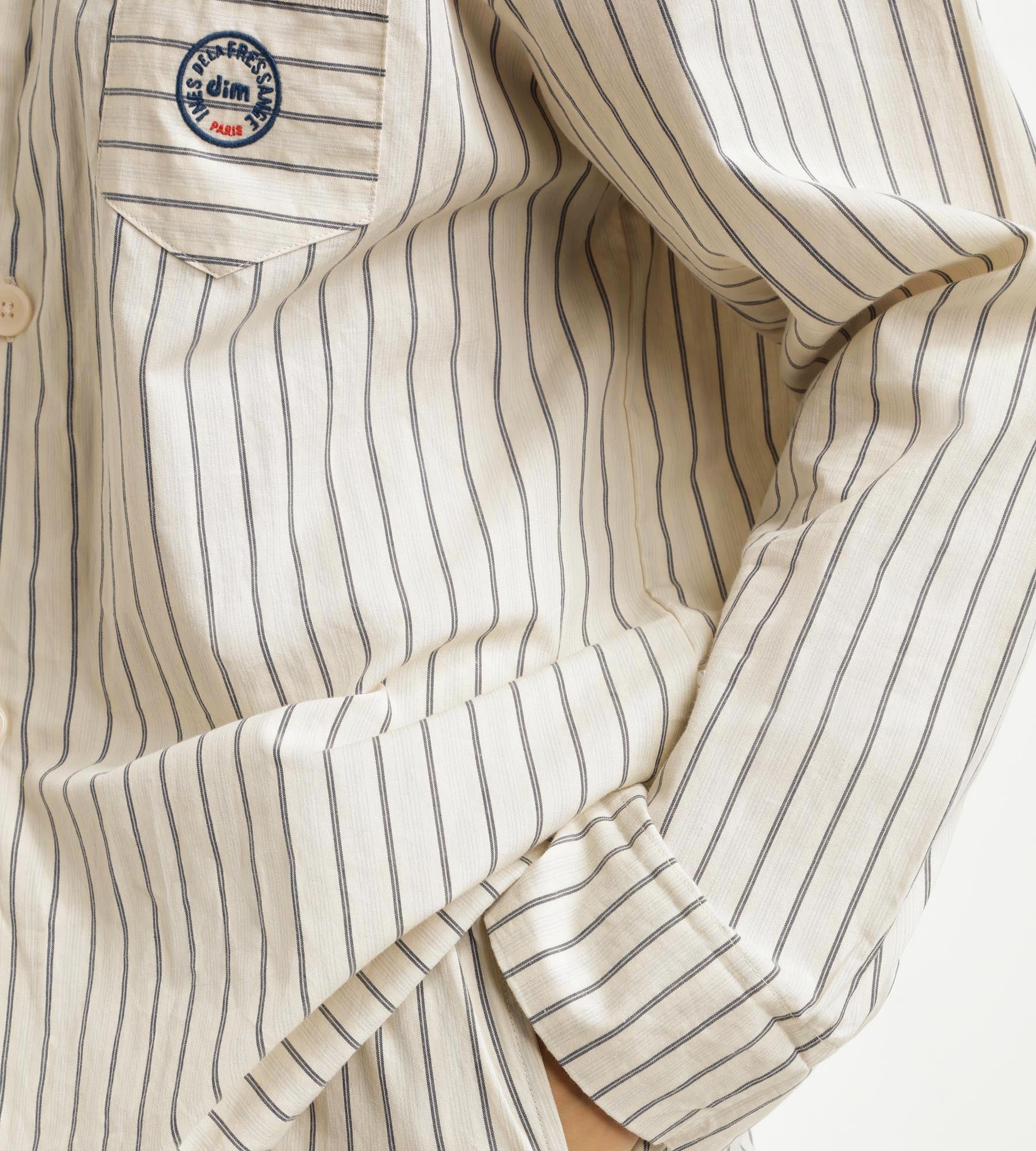 Unisci comfort ed eleganza con il pigiama donna Dim x Inès de La Fressange in popeline grigio a righe.