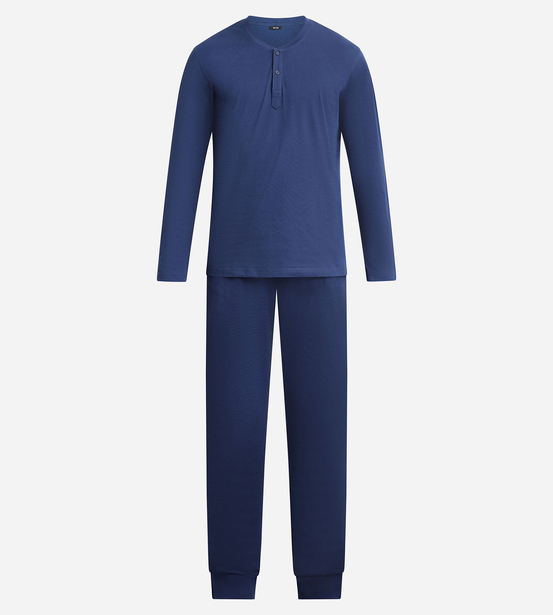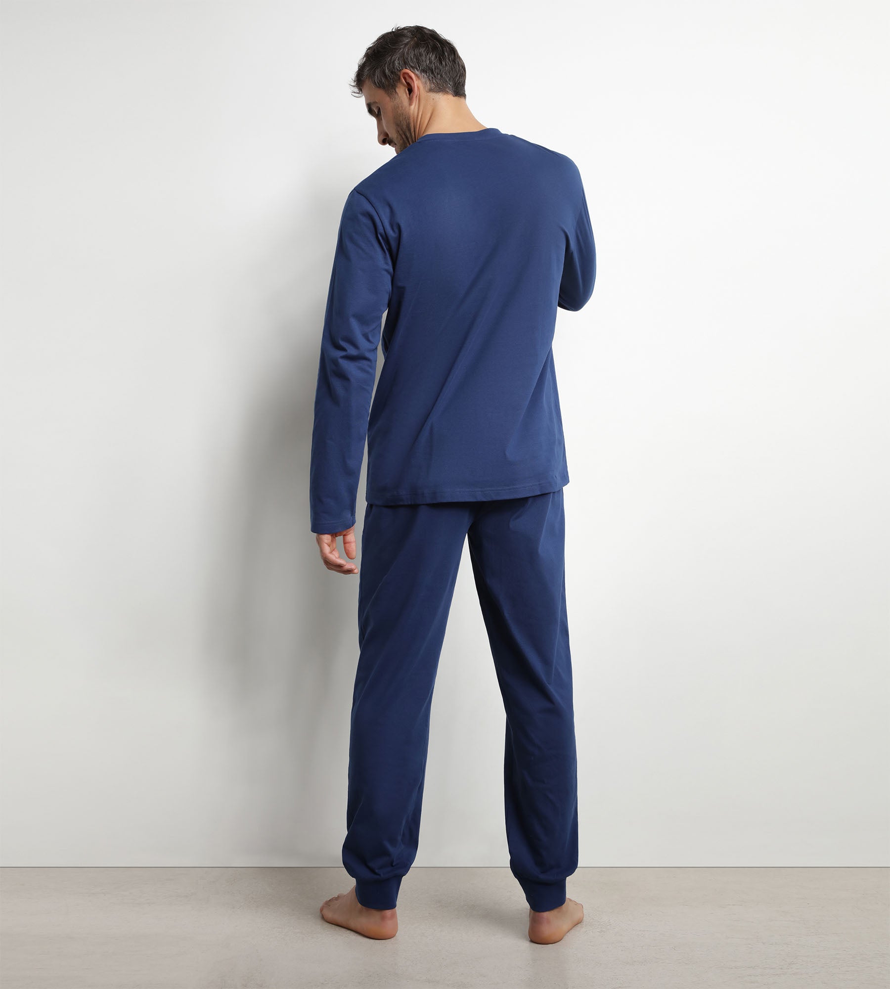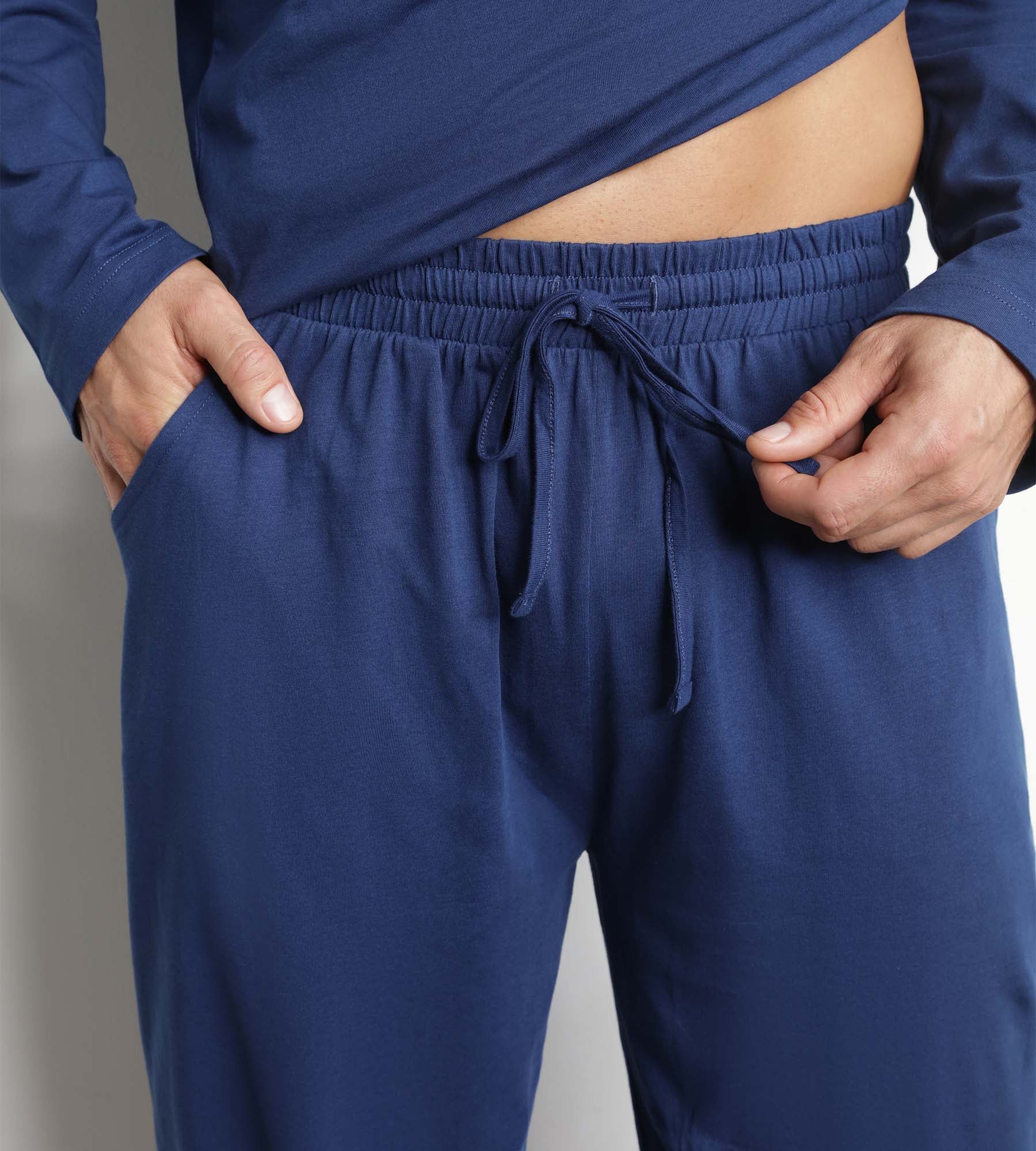 Lasciati avvolgere dal pigiama da uomo Dim Nightwear in jersey blu notte e taglio jogger, pensato per unire morbidezza e linea moderna.