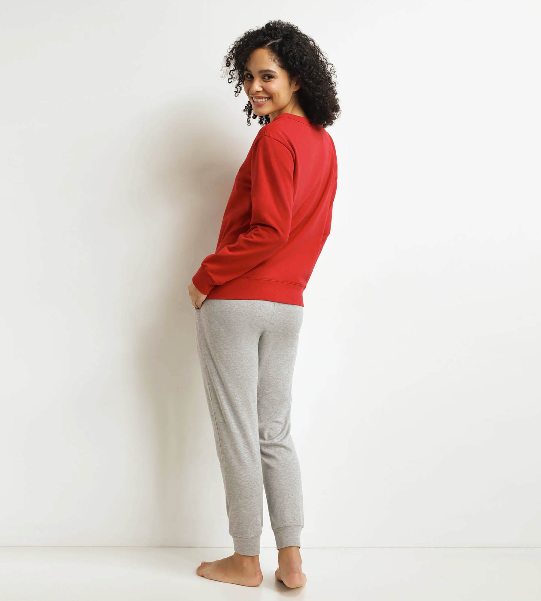 Dai un tocco di festa alle tue serate con il pigiama da donna DIM Family in jersey rosso e grigio!