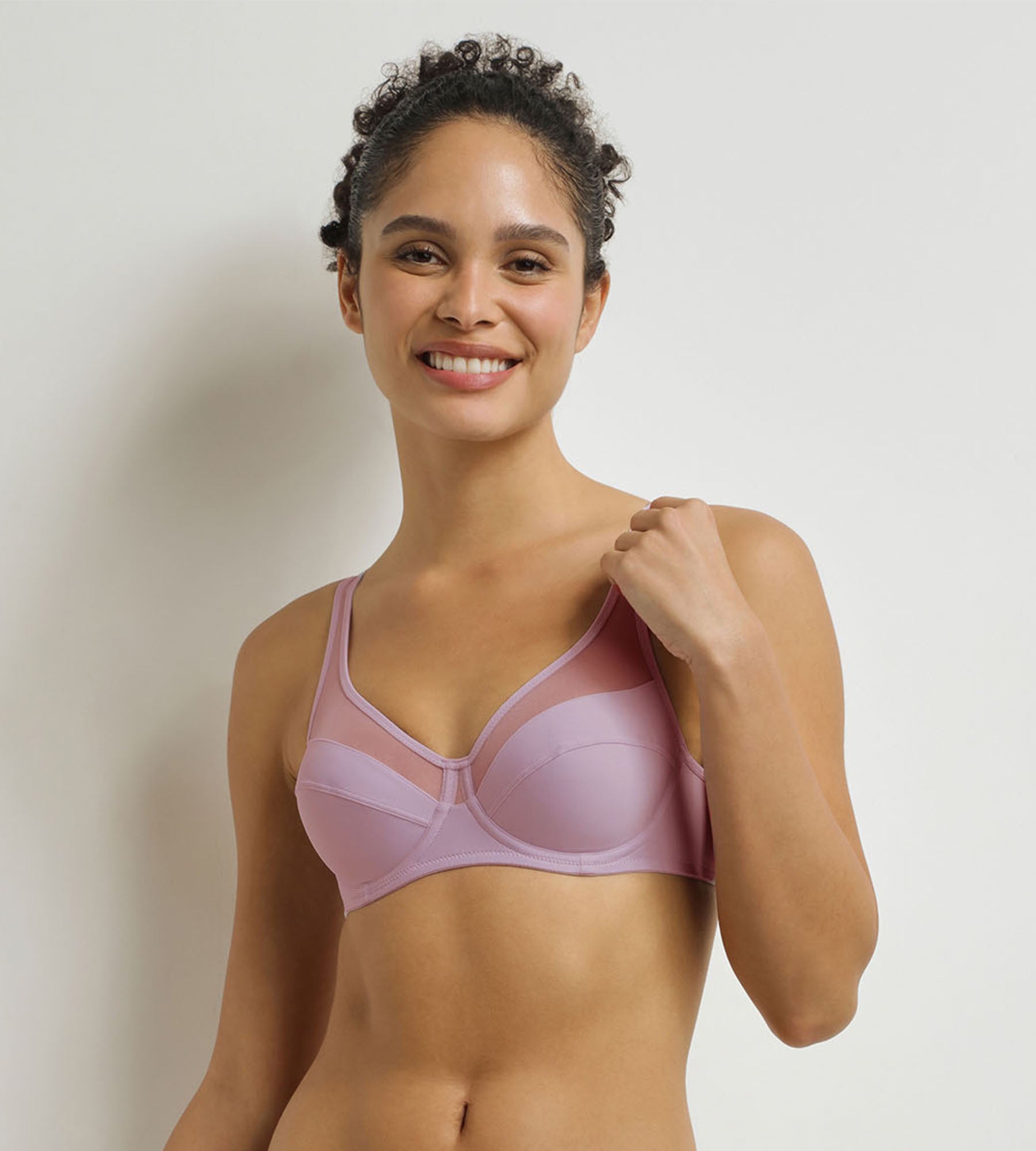 Combina sostegno, comfort e seduzione con il reggiseno push-on con ferretto Generous in microfibra e tulle viola.