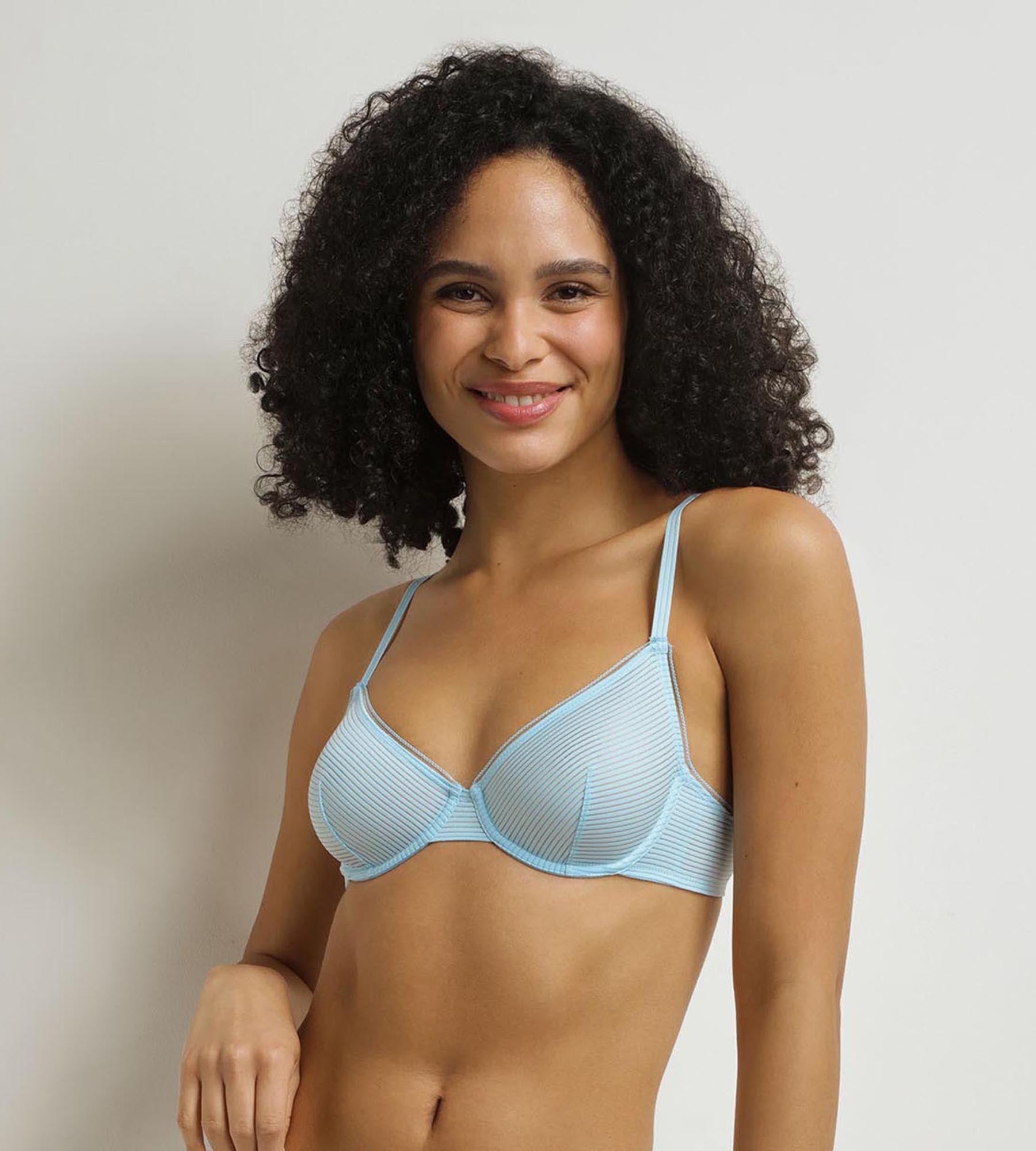 Il tuo look è elegante con il reggiseno a balconcino Bleu Chemise Dim x Inès de La Fressange, dalle linee trasparenti e slanciate.