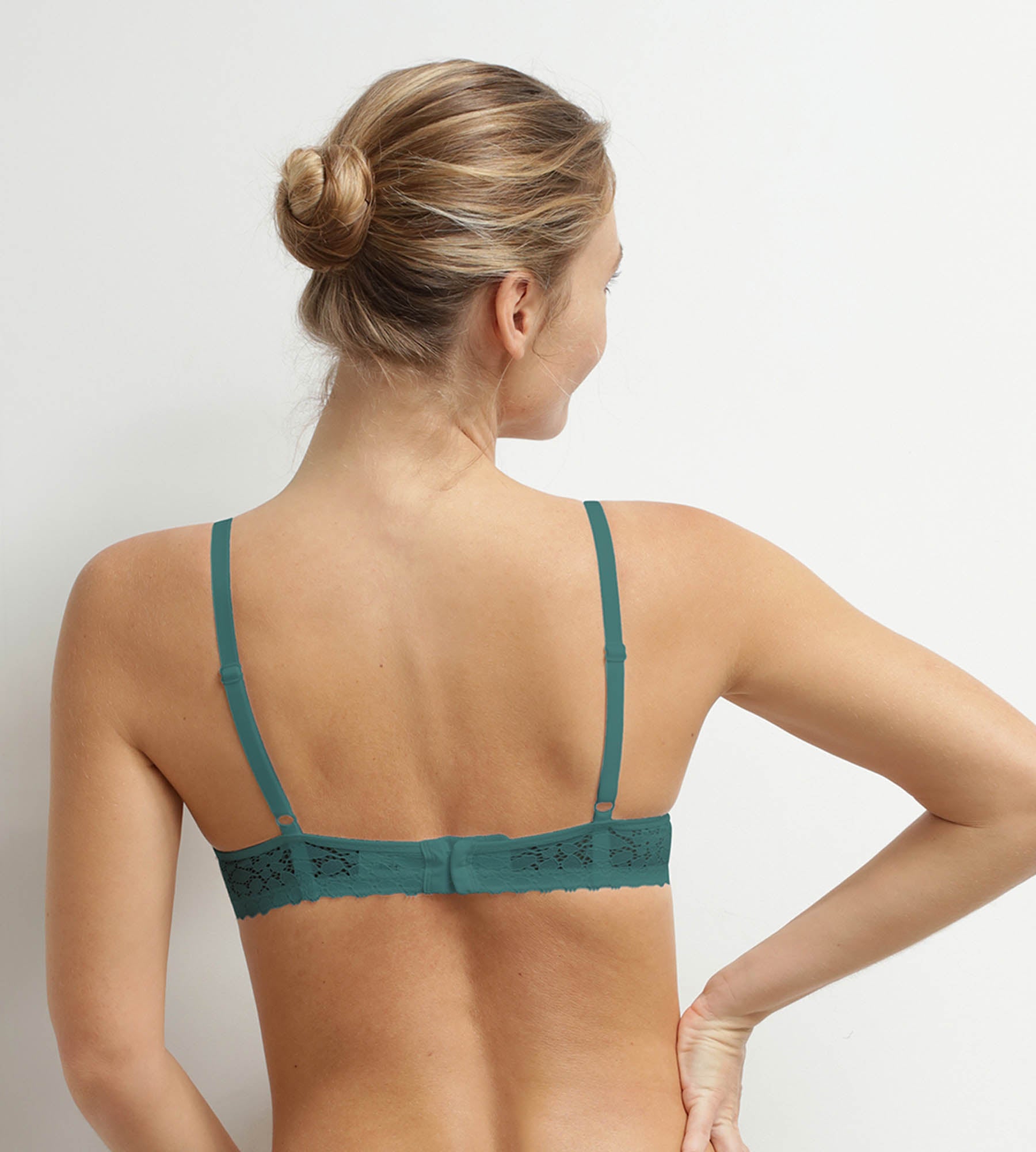 Leggero e seducente, il reggiseno con ferretto Daily Dentelle assicura un sostegno fluido senza rinunciare allo stile. La sua microfibra morbida si adatta alle forme offrendo un comfort continuo, mentre il pizzo traforato aggiunge un tocco di carattere. In questo elegante tono Verde Smeraldo, si indossa sia sotto una camicia aperta che sotto un top aderente, per un look fresco e femminile.