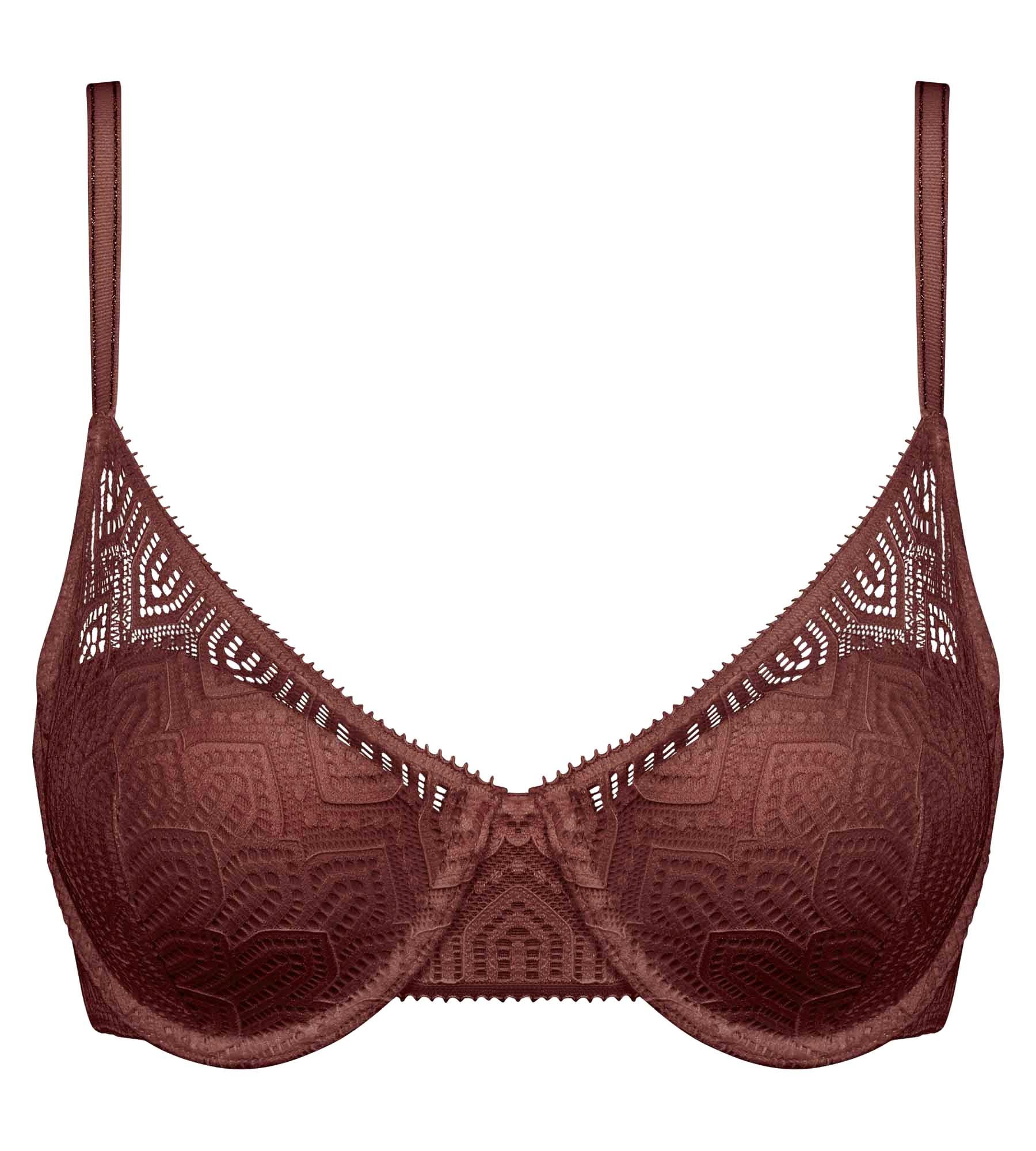 Valorizza il tuo seno con stile con il reggiseno a balconcino con ferretto Mod di Dim® in pizzo Cacao Art Deco!
