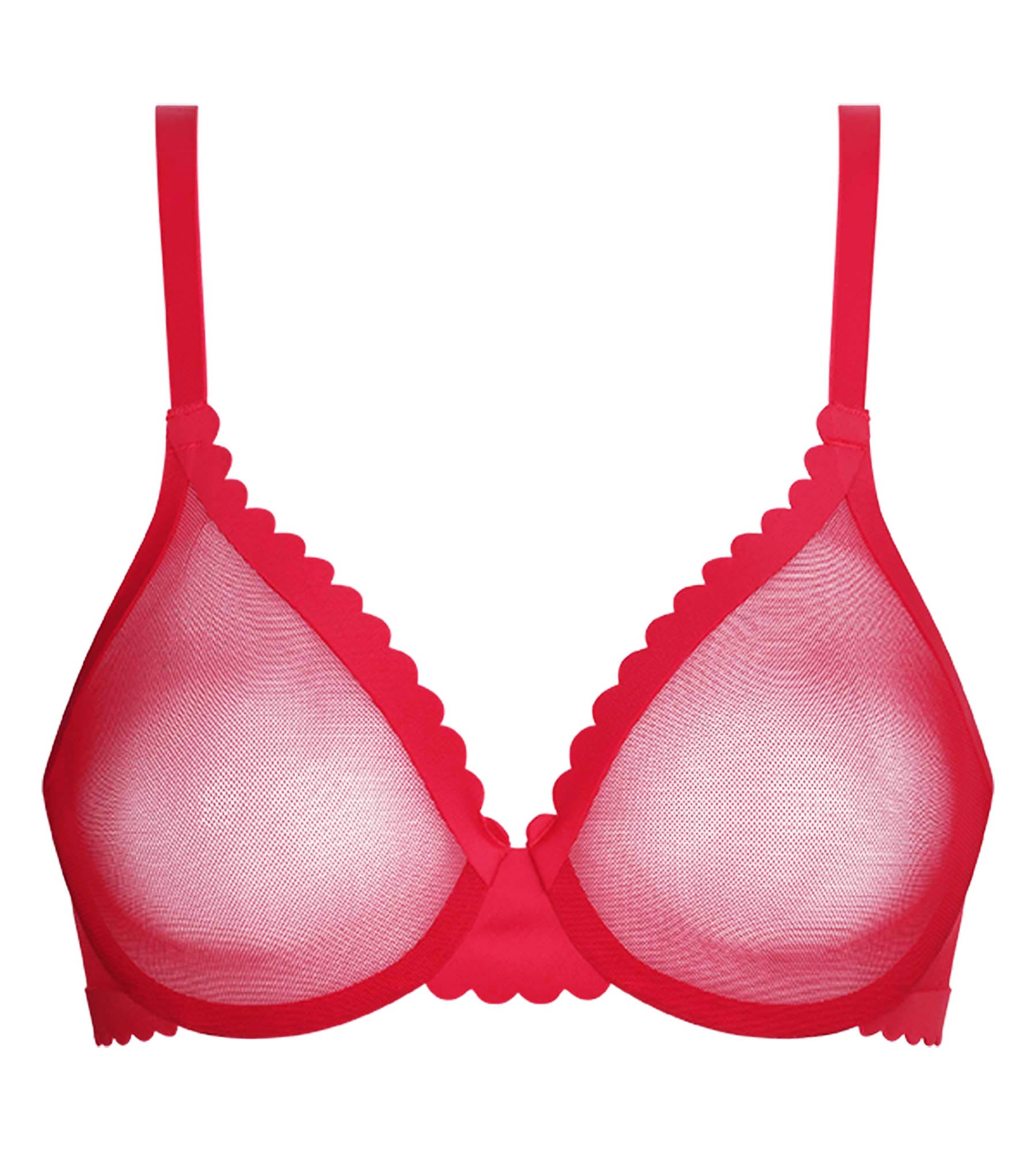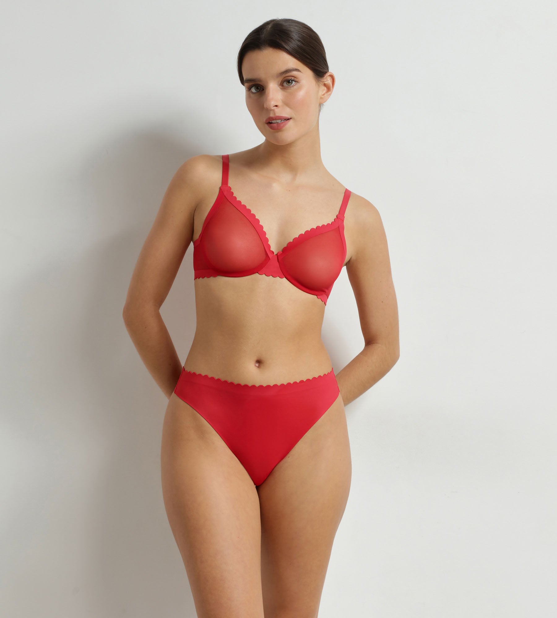 Lasciati conquistare dal reggiseno a balconcino Dim Body Touch Cheeky in tulle trasparente Rosso Valentin, il tuo alleato per sostegno e femminilità!