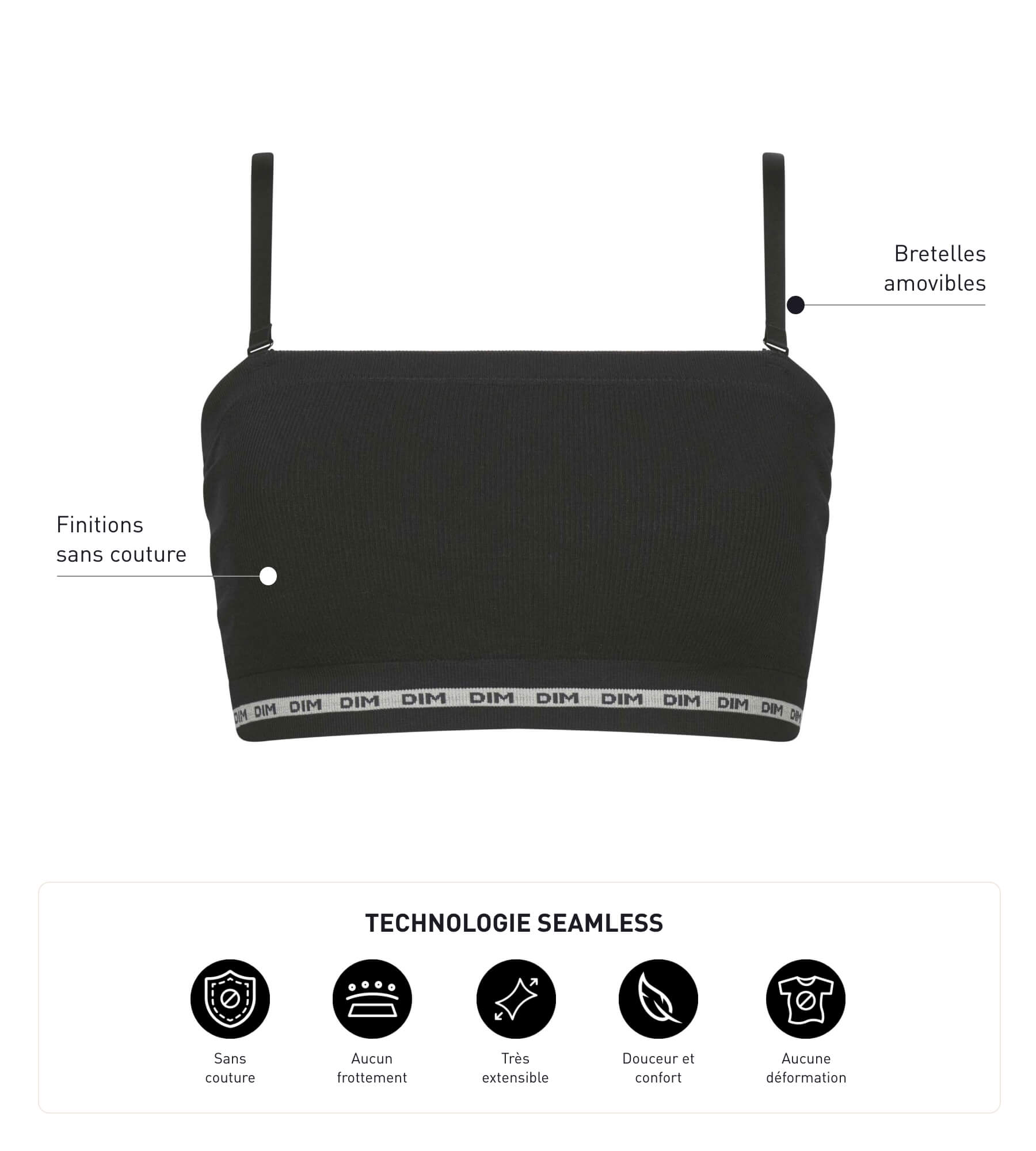 Affronta la giornata con ferretto con il reggiseno a bandeau in poliammide modal Dim Icons Seamless Noire!