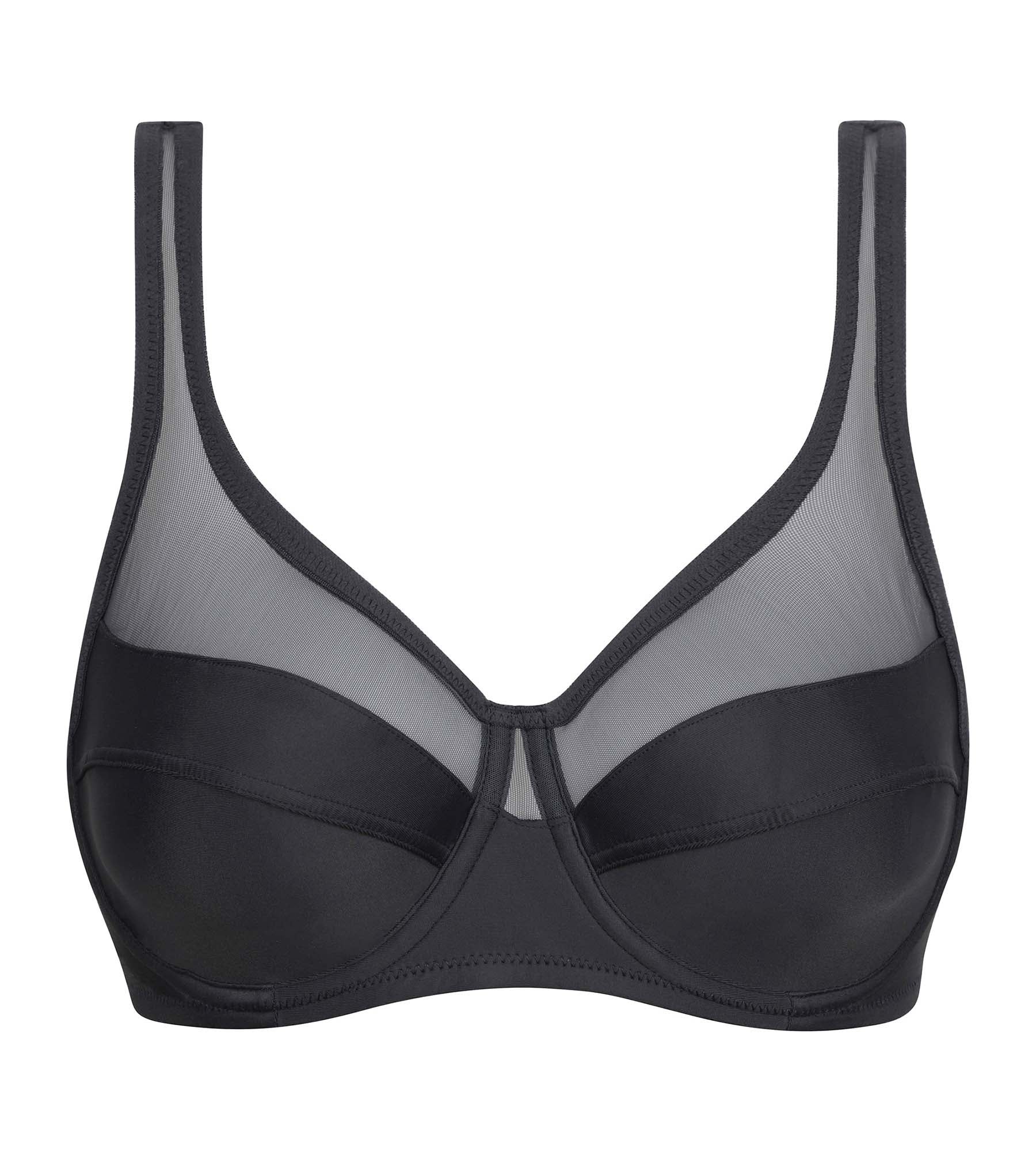 Valorizza il tuo seno con comfort e modernità grazie al reggiseno a incastro Dim Generous in microfibra e tulle grigio granito.