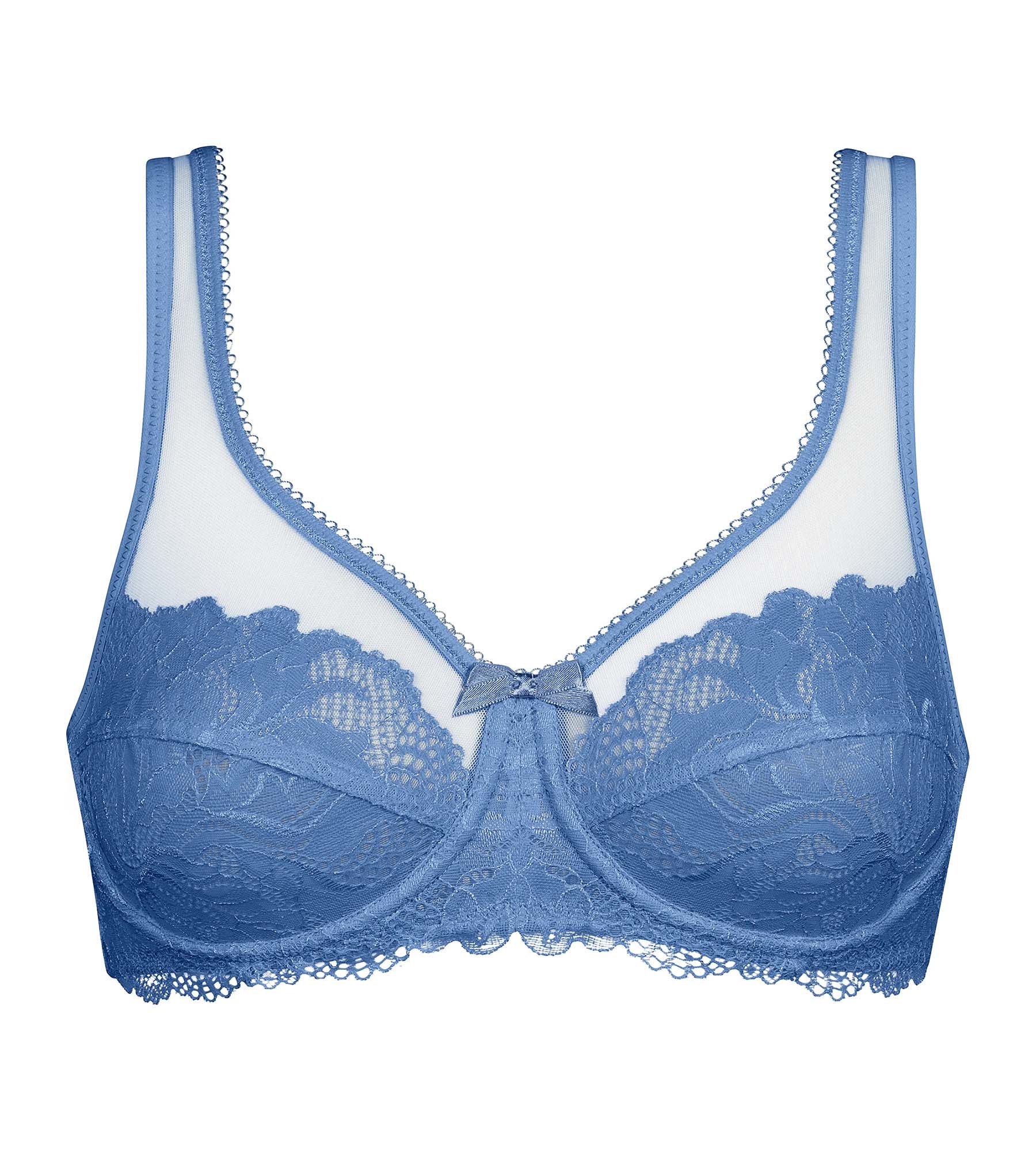 Scegli il reggiseno push-on Generous Essentiel di DIM in pizzo floreale Riviera Blue per un tocco fresco e femminile!