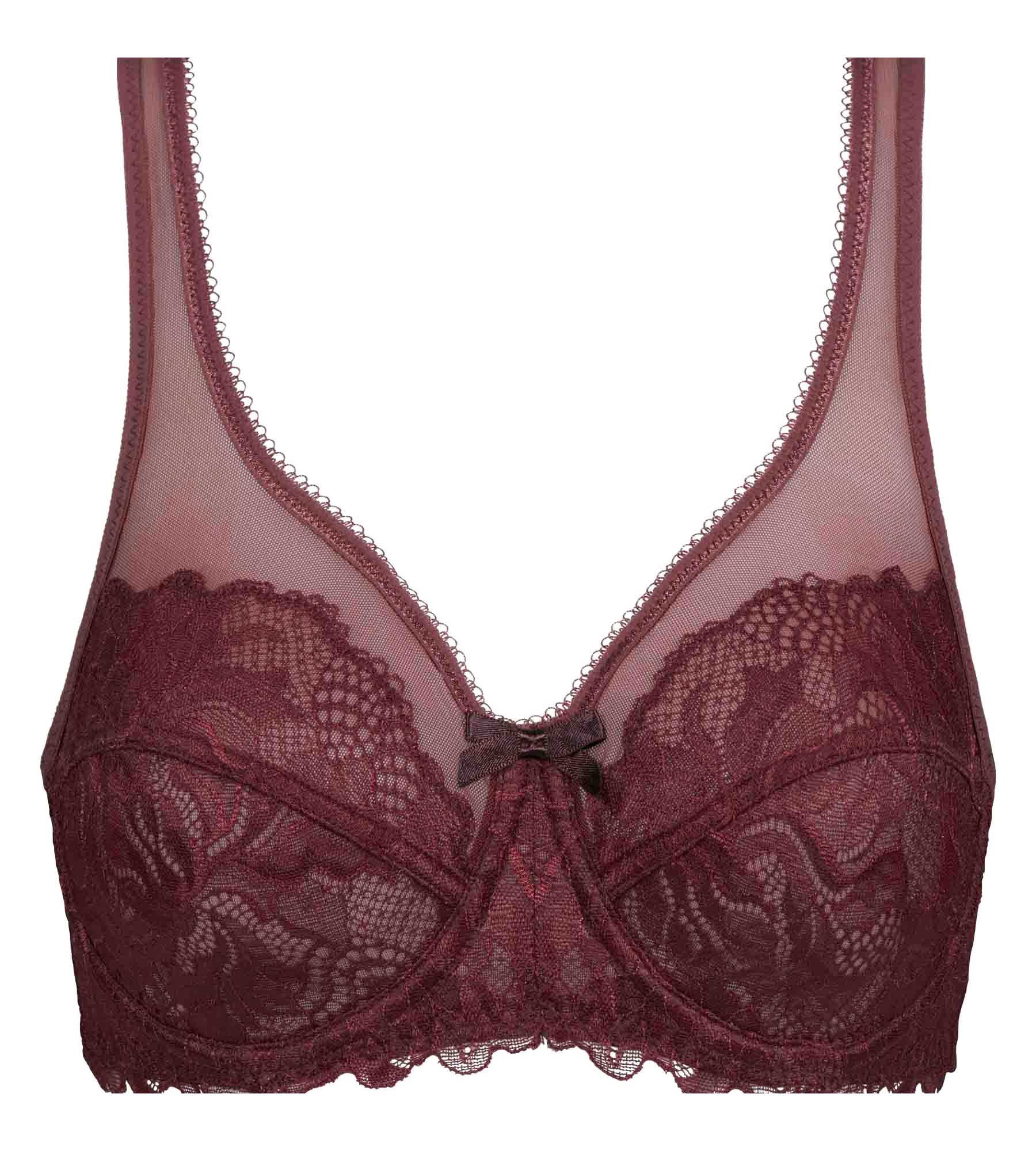 Realizzati con una profonda ferratura, uno slip ampio e una schiena smerlata, i reggiseni contenitivi Generous Essentiel di Dim valorizzano naturalmente il seno, senza compromettere il comfort! Le coppe semitrasparenti in pizzo floreale e tulle e la tonalità rubino rendono il reggiseno da donna Generous Essentiel uno schianto!