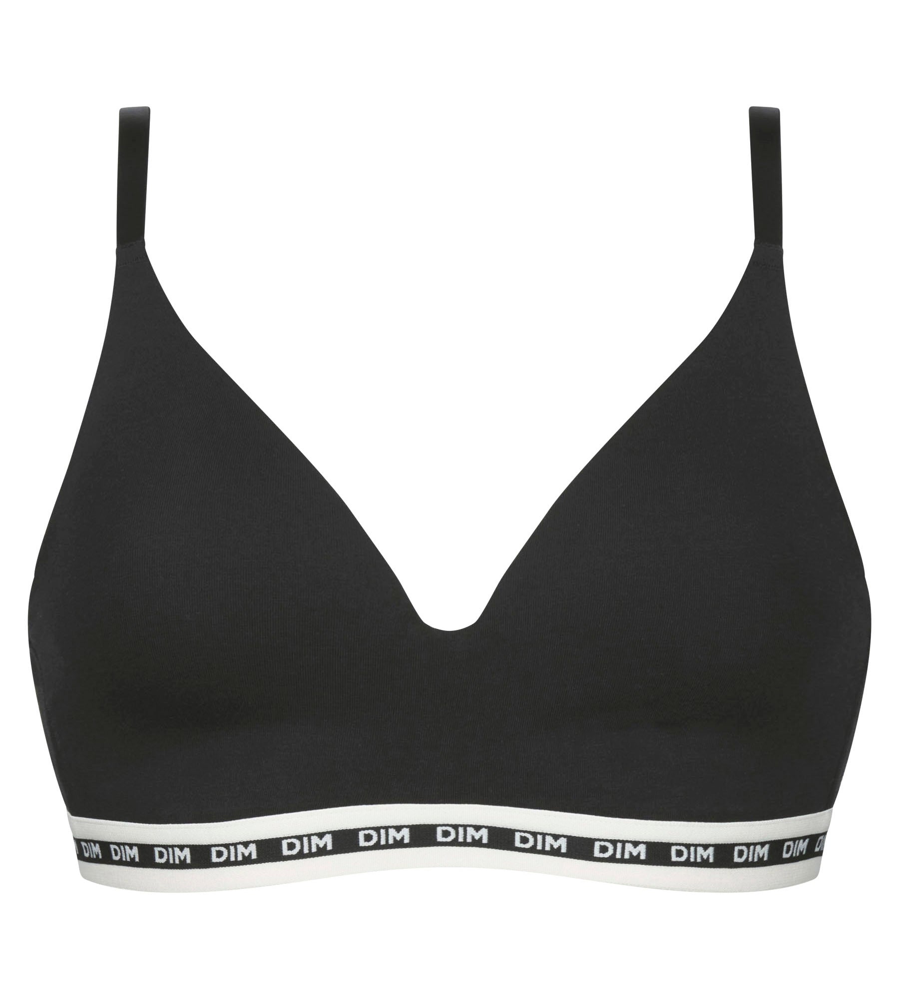 Innamorati della linea minimalista e lusinghiera di questo reggiseno a triangolo senza ferretto di Dim Icons Essenziali, in cotone modale nero sobriamente chic!