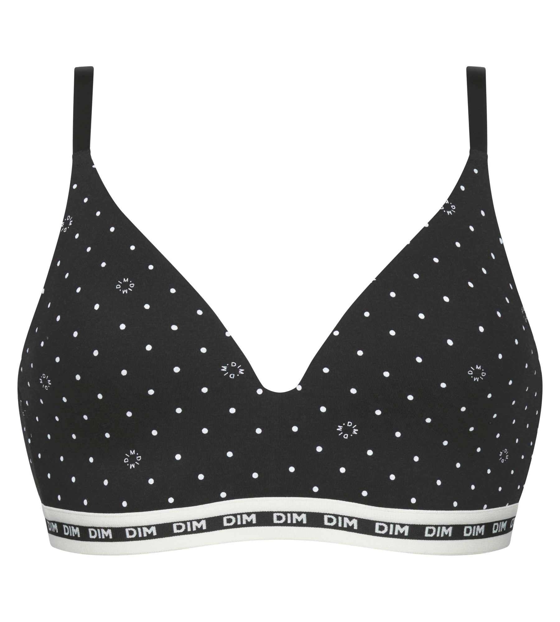 Adotta lo stile da pin-up con brio grazie al nostro reggiseno a triangolo Dim Icons Essenziali con coppe sagomate senza ferretto, in cotone modale nero e con una fantasia a pois di tendenza!