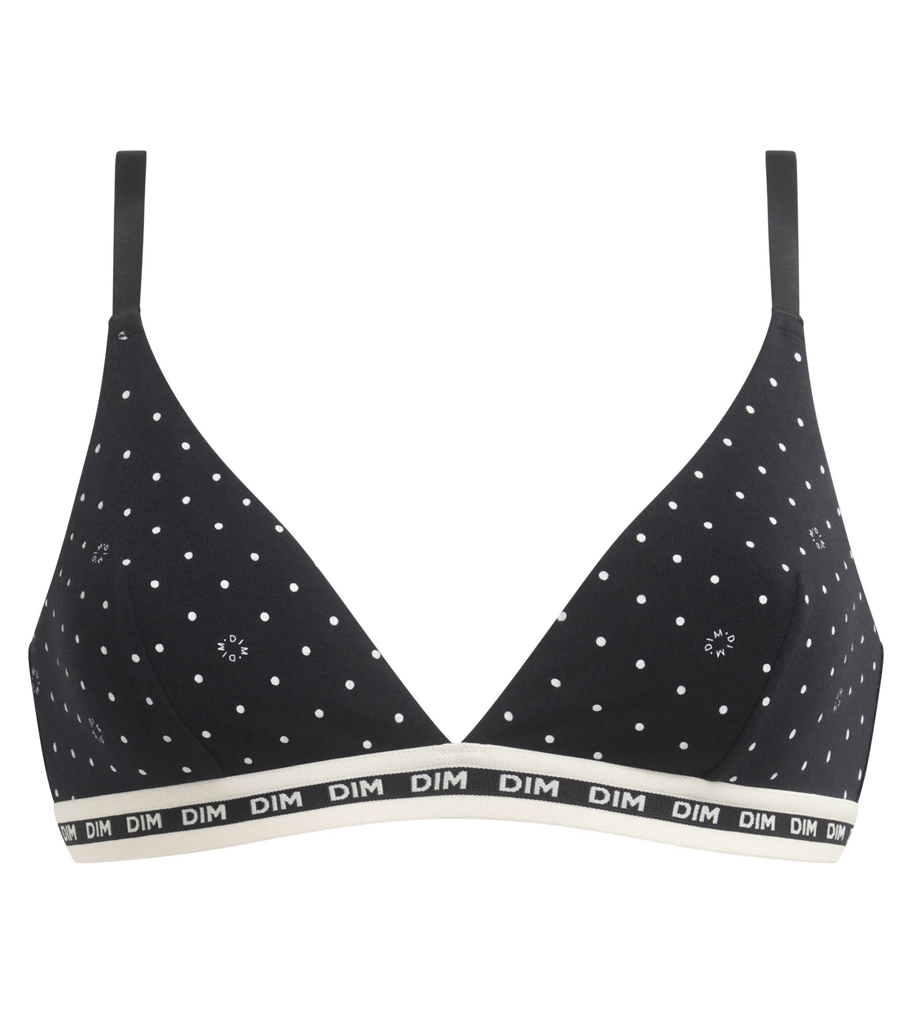 Dim rivisita l'iconico motivo a pois con questo reggiseno a triangolo senza ferretto Dim® Icons Essenziali in cotone modale nero!
