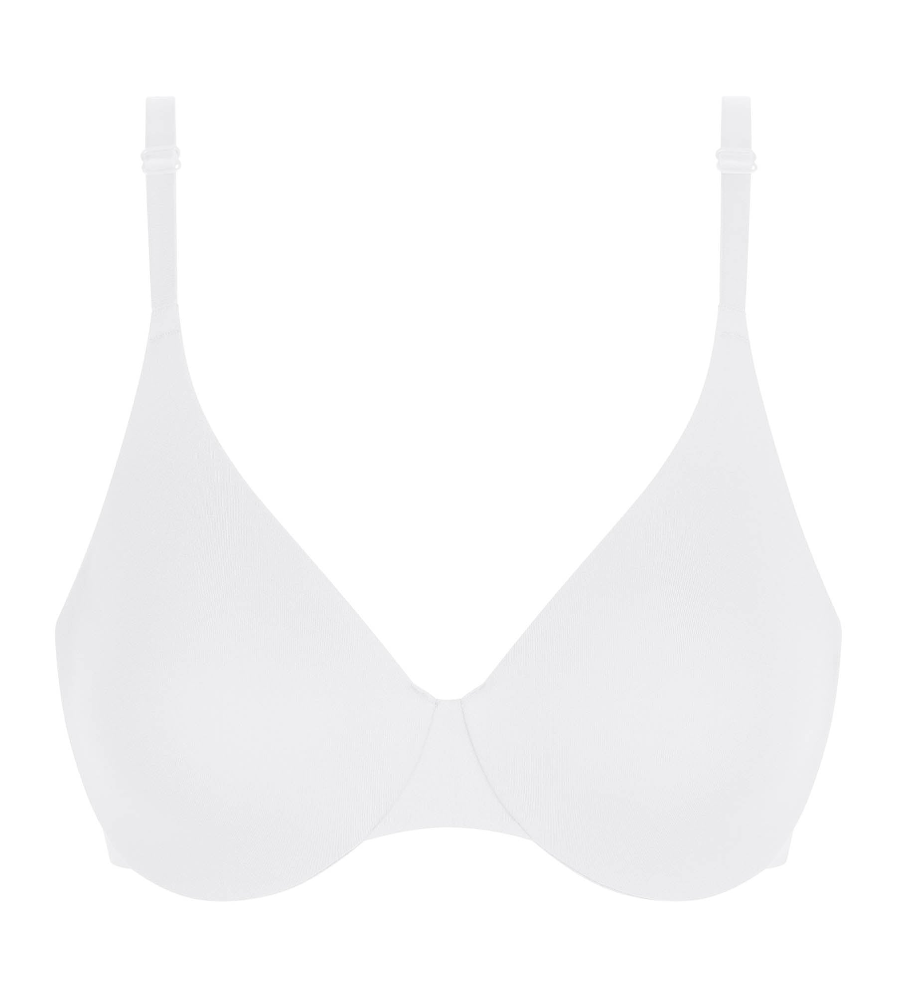 Mostra un seno liscio e un effetto pulito con il reggiseno con ferretto DIM Invisible in microfibra bianca.
