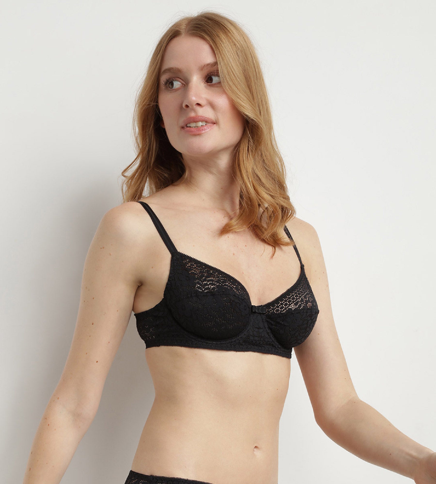 Reggiseno con ferretto in pizzo floreale riciclato Nero Sublim
