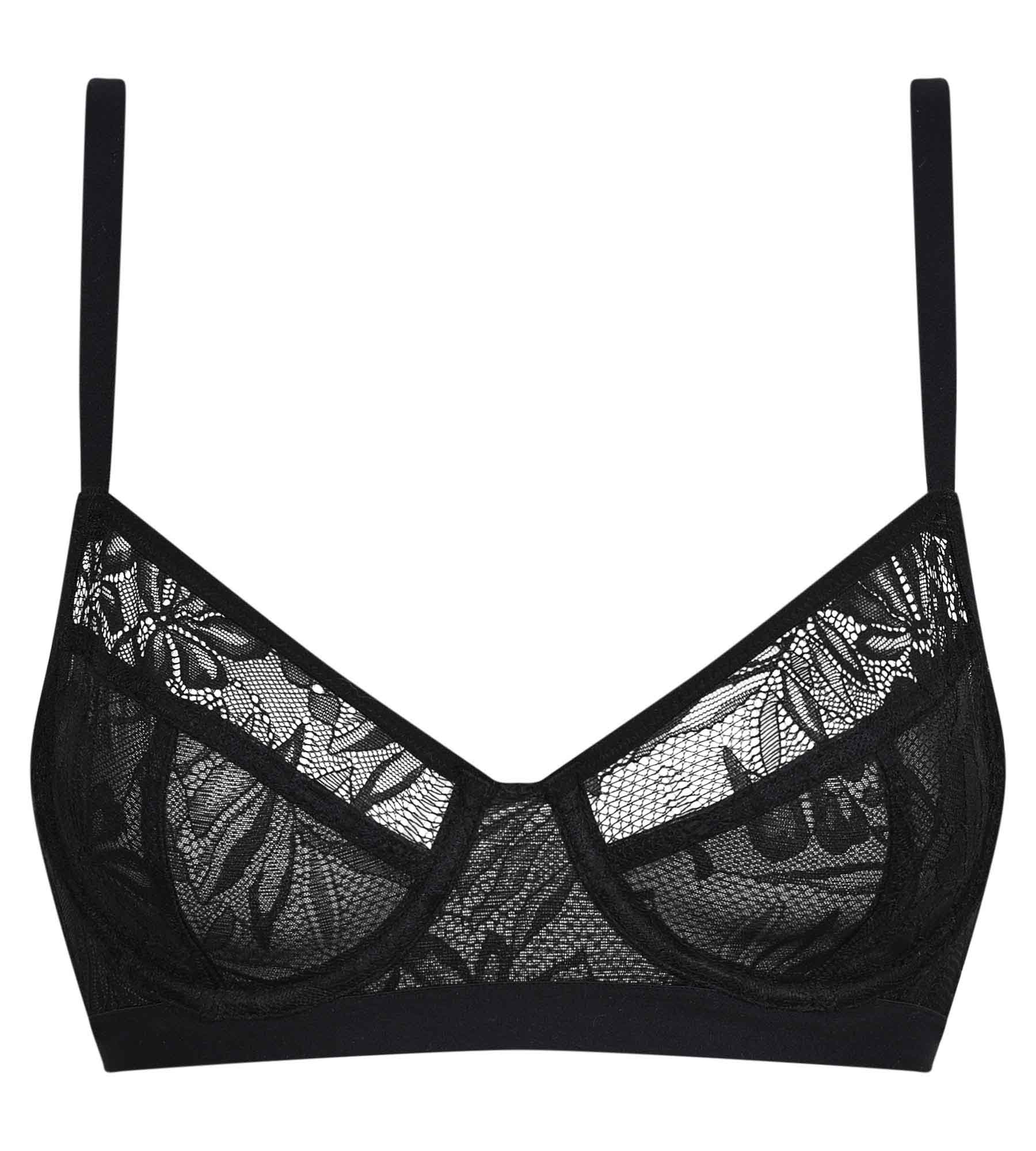 Innamorati dell'elegante ed esotico reggiseno Mod di Dim in pizzo nero con un motivo tropicale di tendenza!