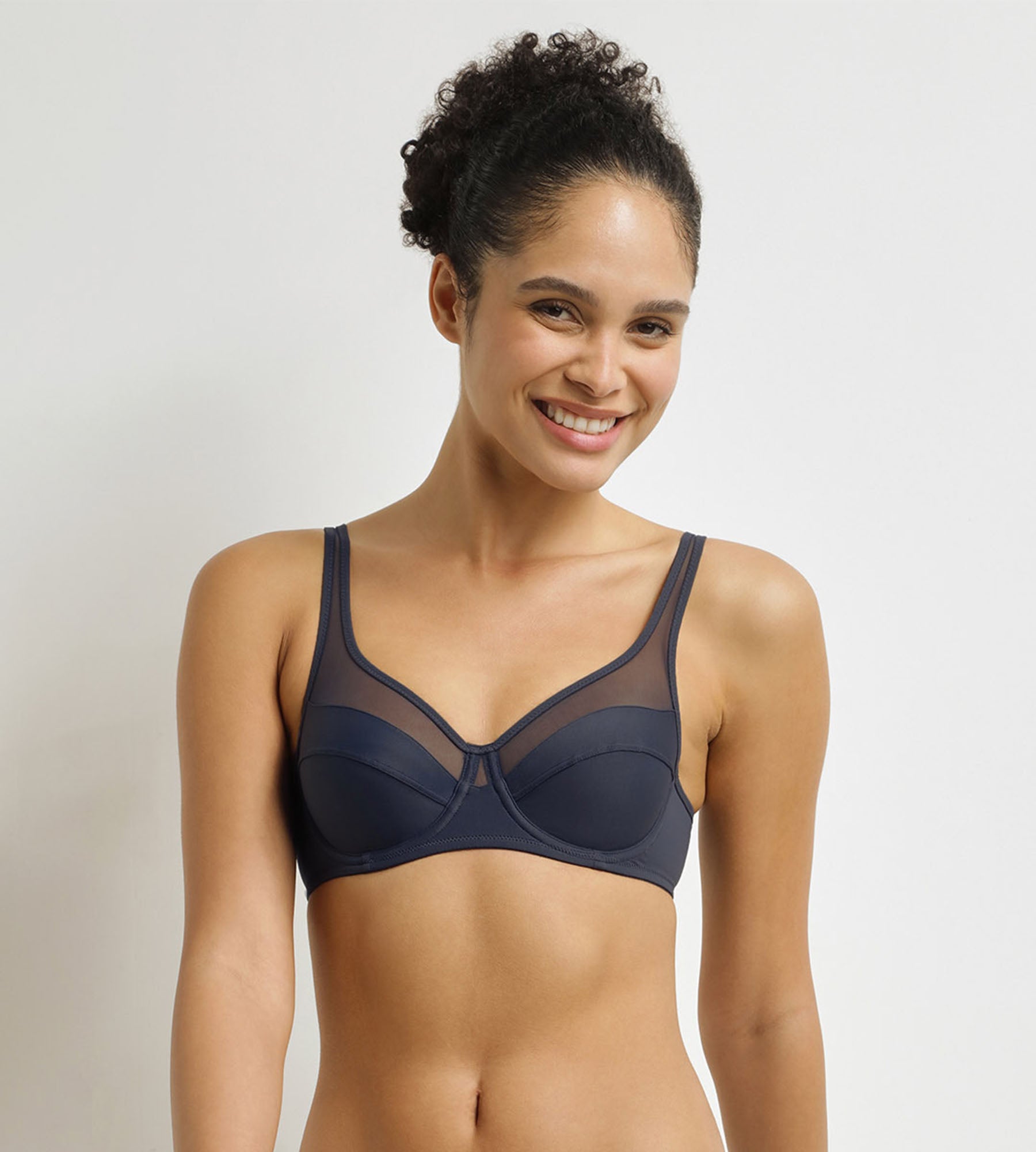 Combina sostegno, modernità e leggerezza con il reggiseno a incastro Generous in microfibra e tulle blu.