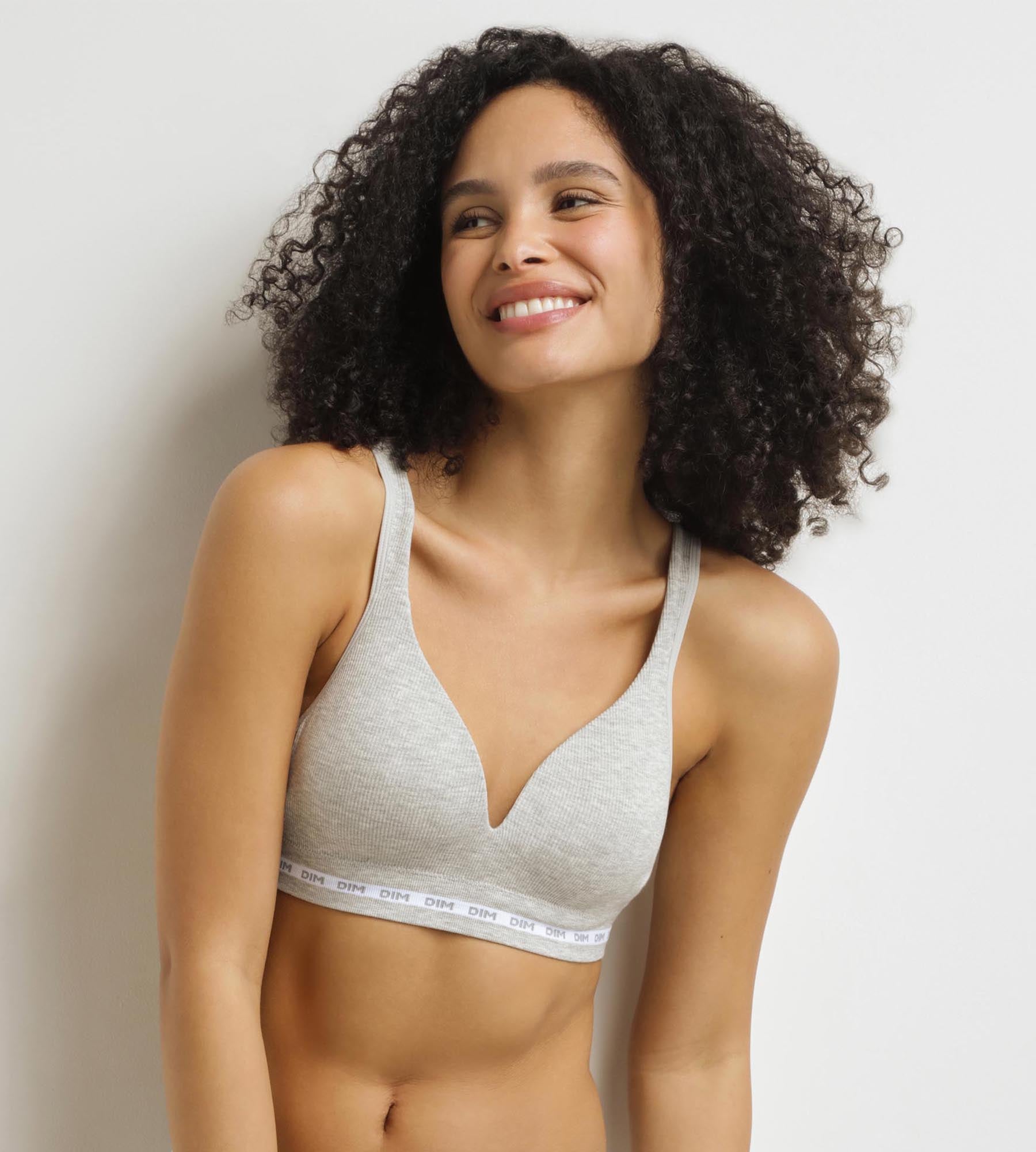 Metti in risalto il tuo seno con comodità grazie al reggiseno imbottito senza ferretto DIM Icons in tessuto a coste grigio mélange.