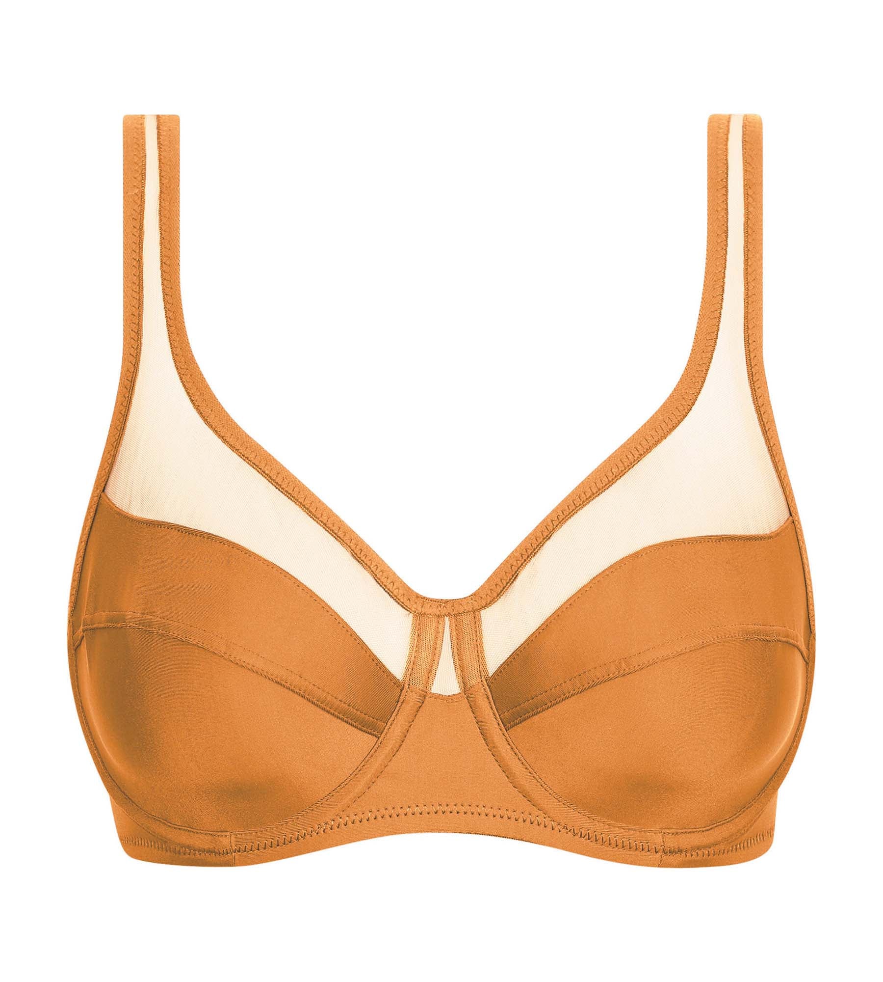 Ravviva il tuo look quotidiano con il reggiseno a incastro Dim Generous in microfibra e tulle color marrone arancio.