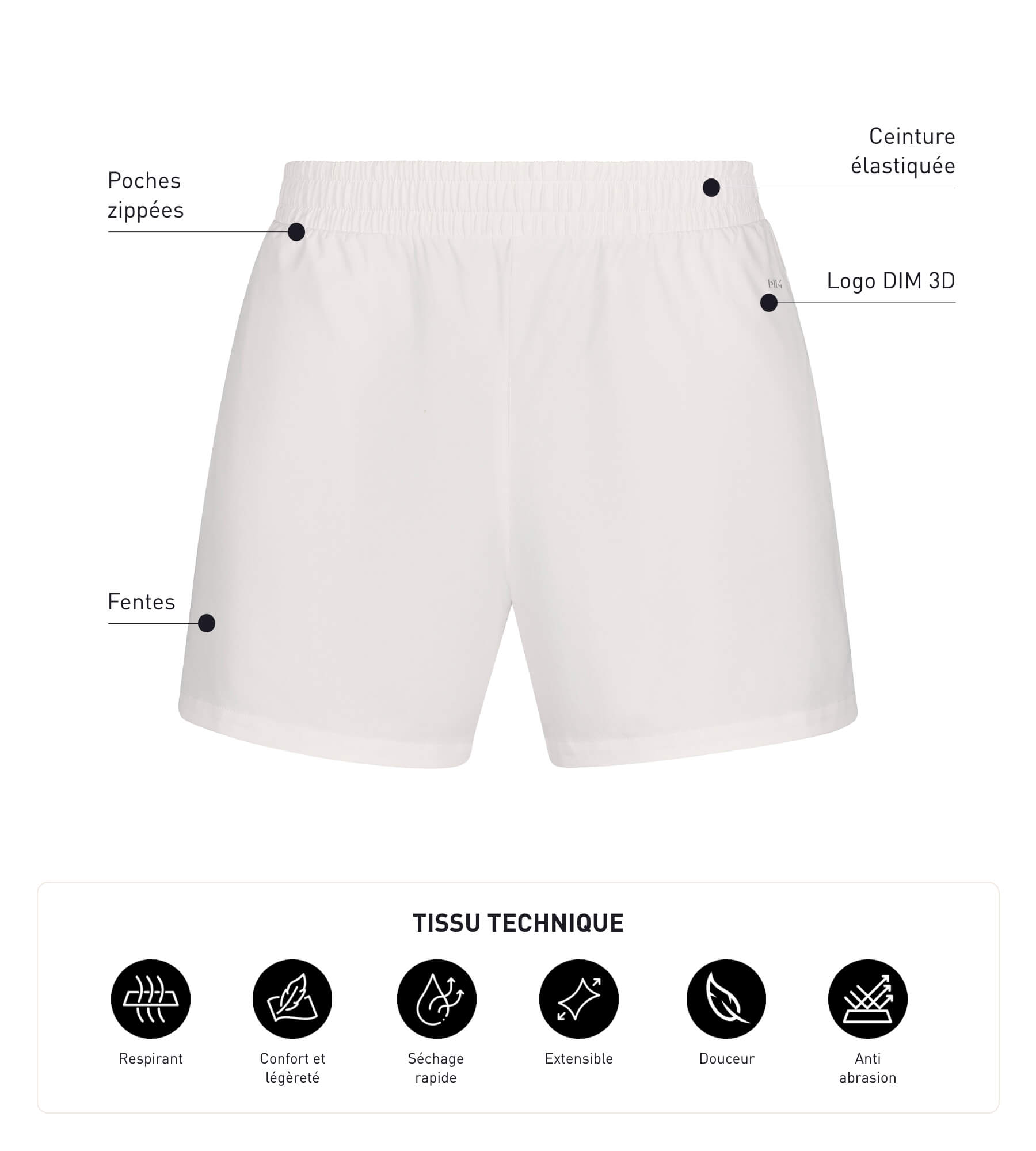 Pensati per uomini attivi che cercano comfort e prestazioni, gli shorts sportivi DIM Move Ecru uniscono stile e funzionalità! Grazie al taglio dritto e al tessuto tecnico, gli shorts da uomo Dim Move sono sempre leggeri e freschi. Dotati di tasche laterali con zip, i pantaloncini sportivi DIM Move tengono al sicuro i tuoi effetti personali, per una sessione serena.