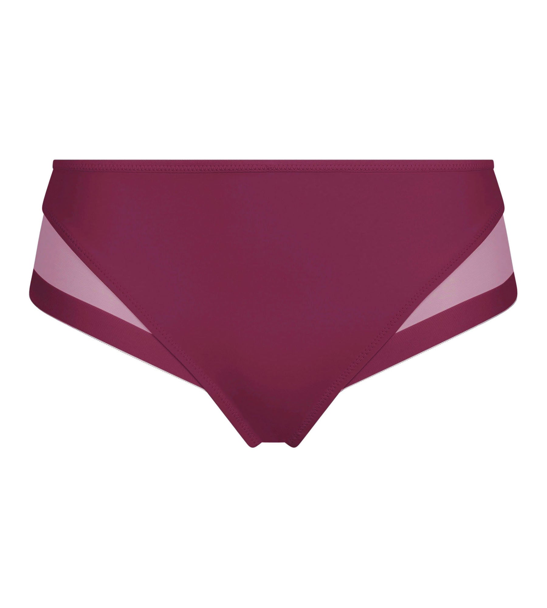 Dai un tocco di carattere alla tua lingerie con gli slip da donna Dim Generous in microfibra e tulle di colore bordeaux intenso.