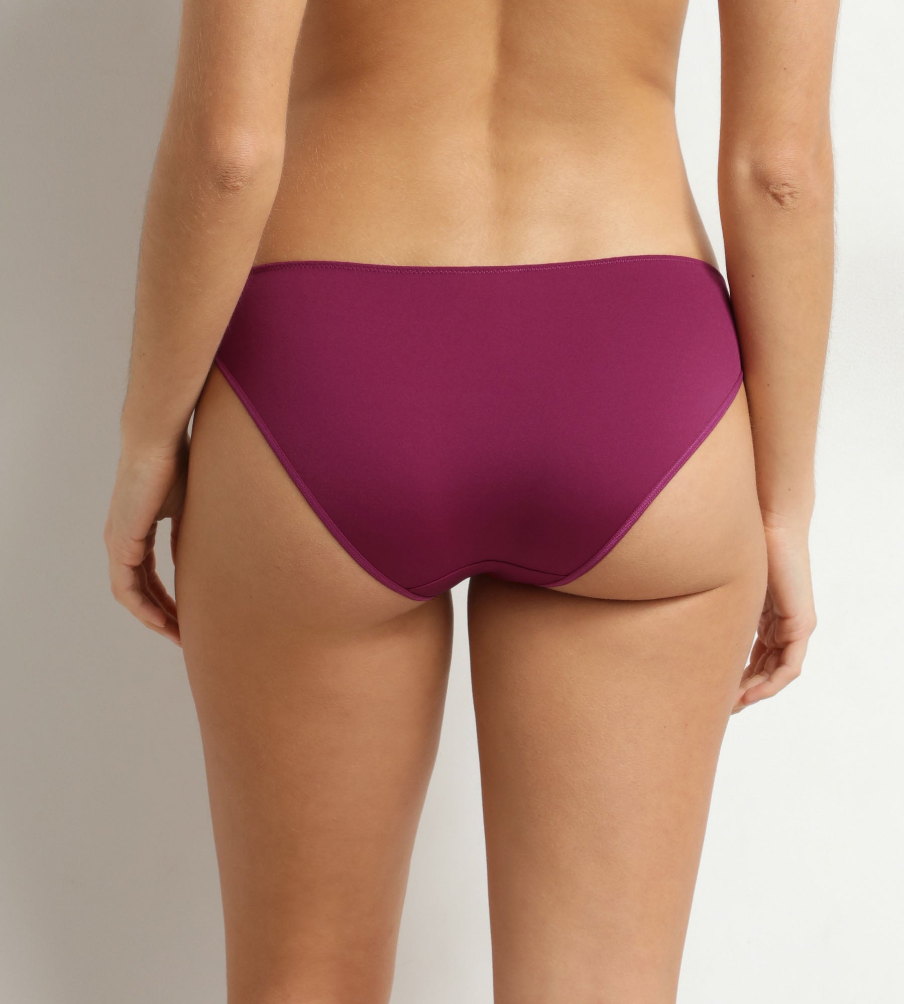 Per un completo armonioso, abbina lo slip da donna Frutti di Bosco Dim Féminine al reggiseno coordinato o scegli le varianti Blu Profondo, Rosso Marrone o Fucsia.