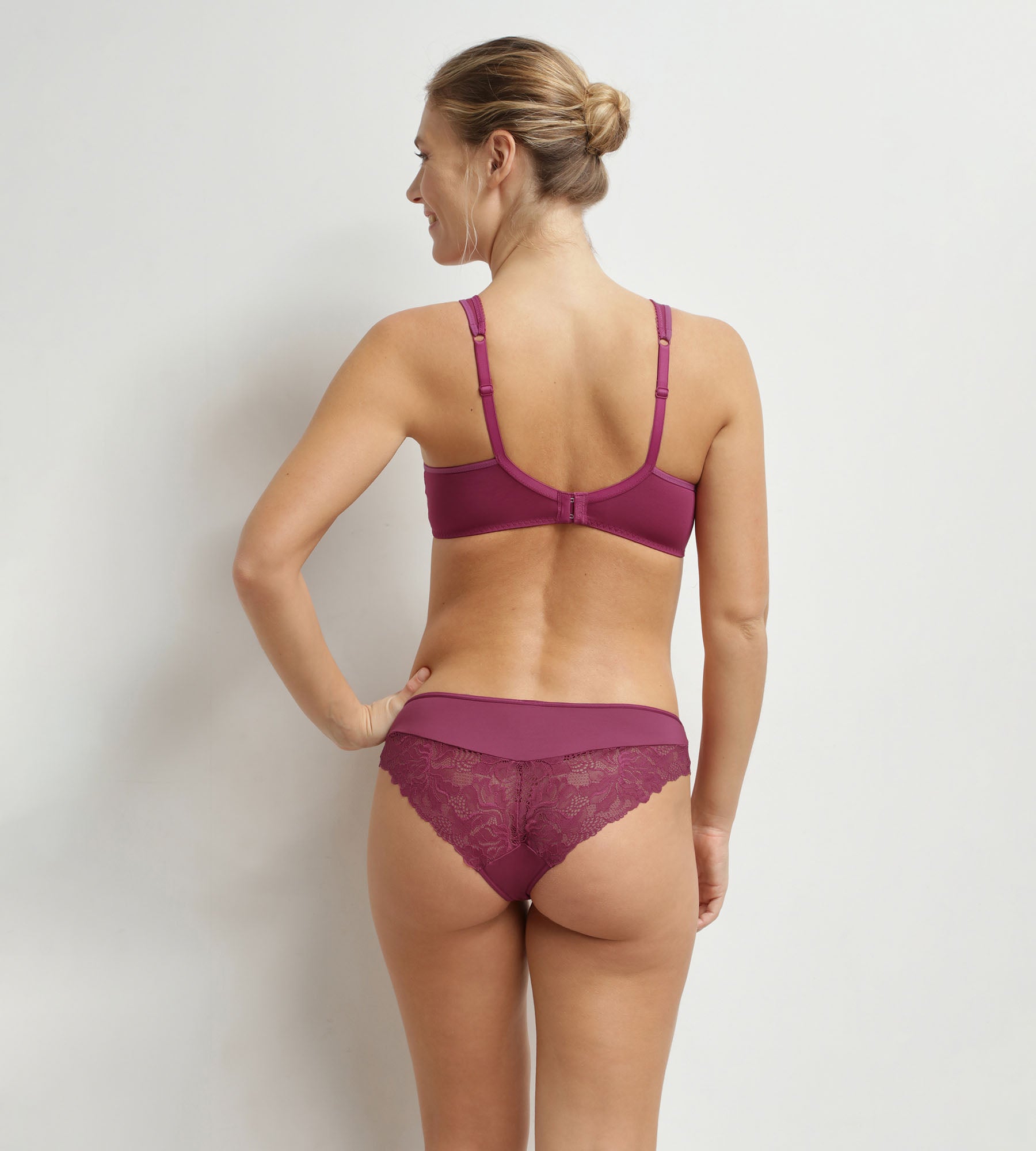 Elegante e comode, le mutandine da donna Dim Generous Essentiel in pizzo e microfibra Rosso Sangria valorizzano la silhouette con morbidezza e leggerezza.