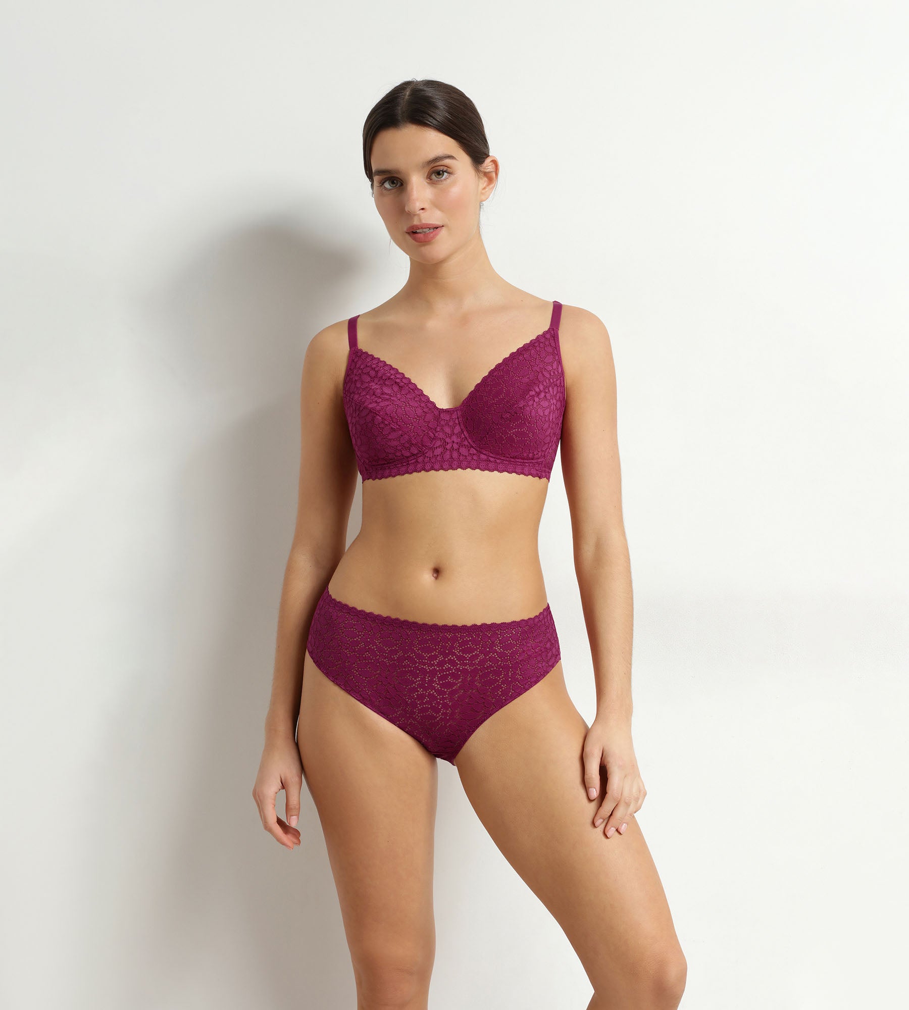 Completa il tuo completo con il reggiseno senza ferretto in pizzo Daily Dentelle dello stesso colore, oppure scegli uno degli altri colori disponibili, come il prezioso Vert Émeraude!