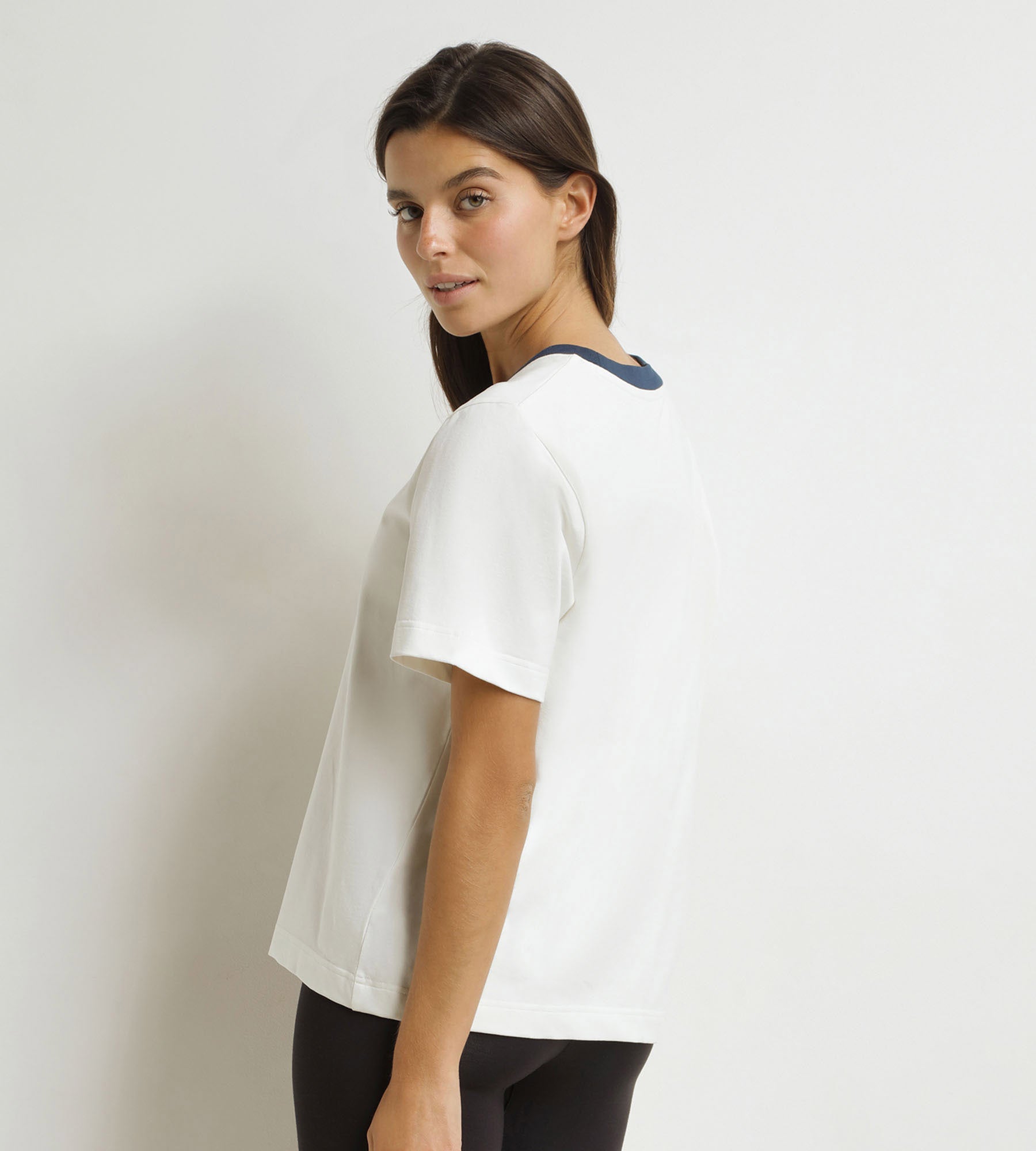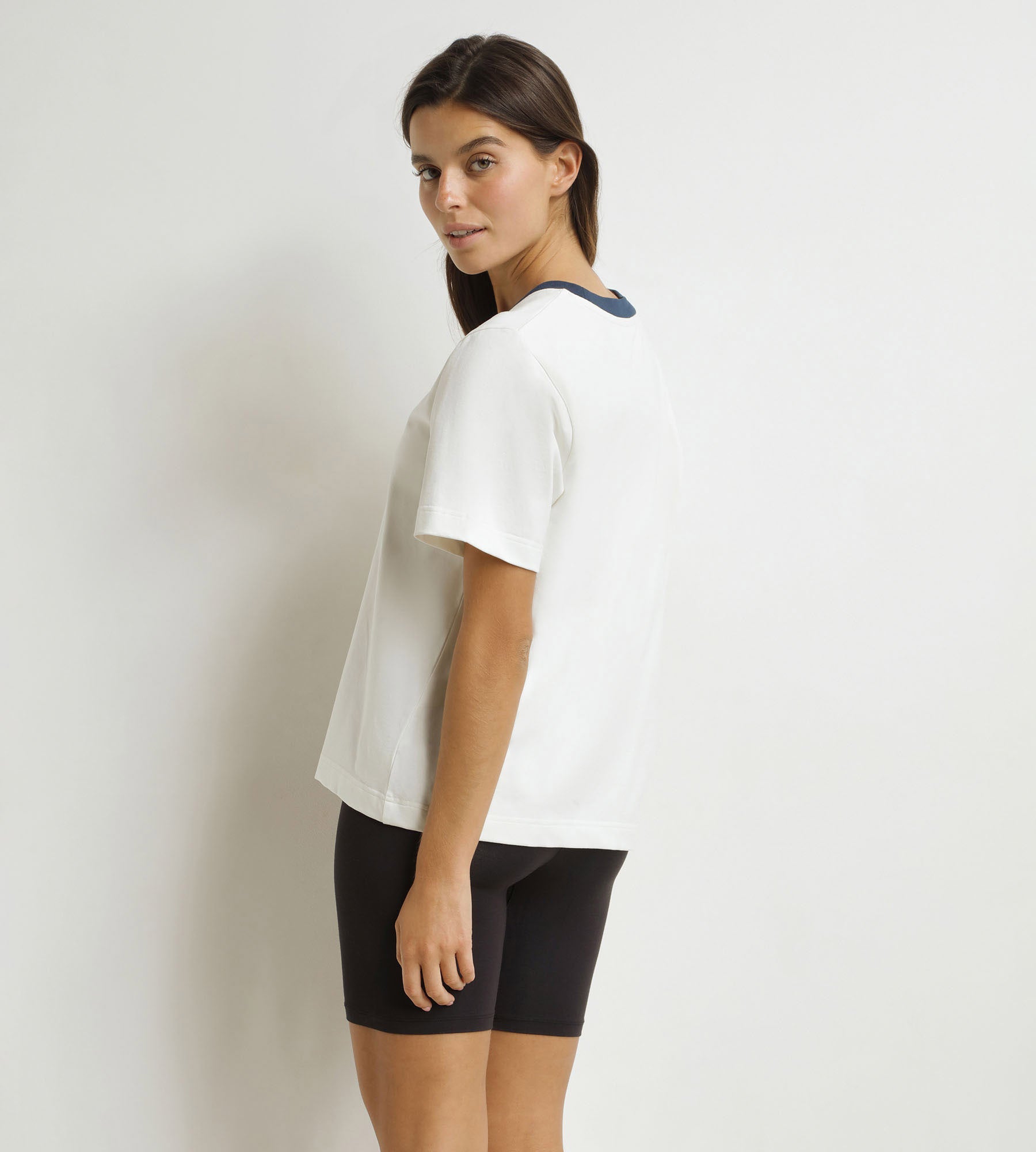 Adotta il look casual della t-shirt da donna Dim x Inès de La Fressange in madreperla, che unisce il comfort moderno a dettagli curati.