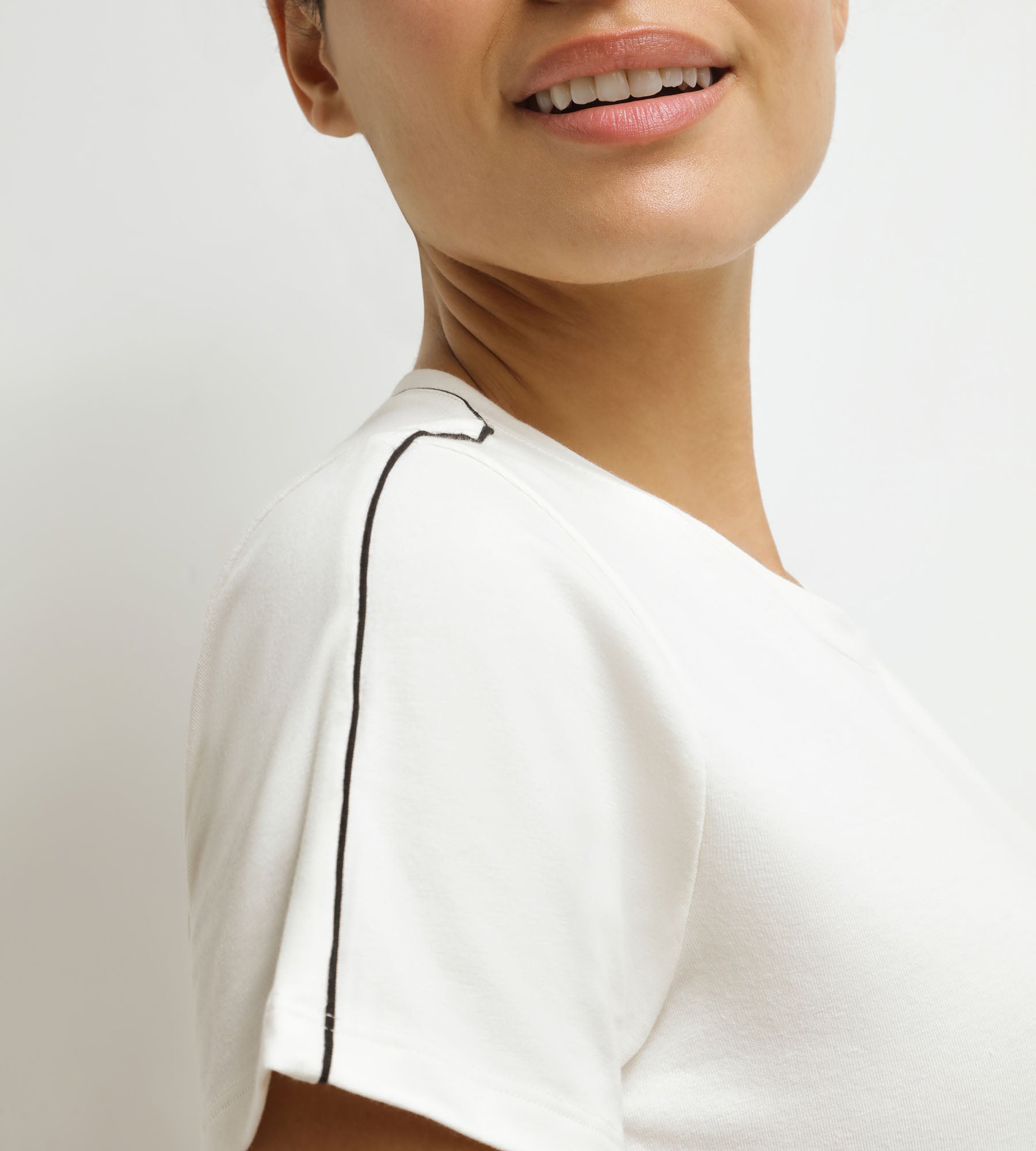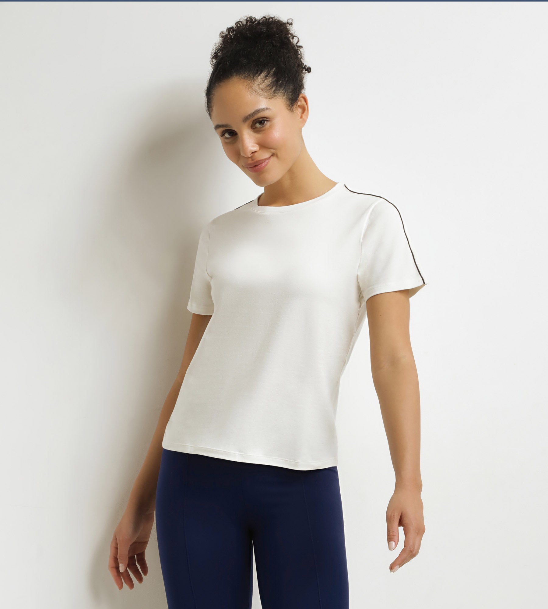 Muoviti in tutta comodità e leggerezza con la t-shirt sportiva da donna DIM Move Ecru in jersey termoregolante!