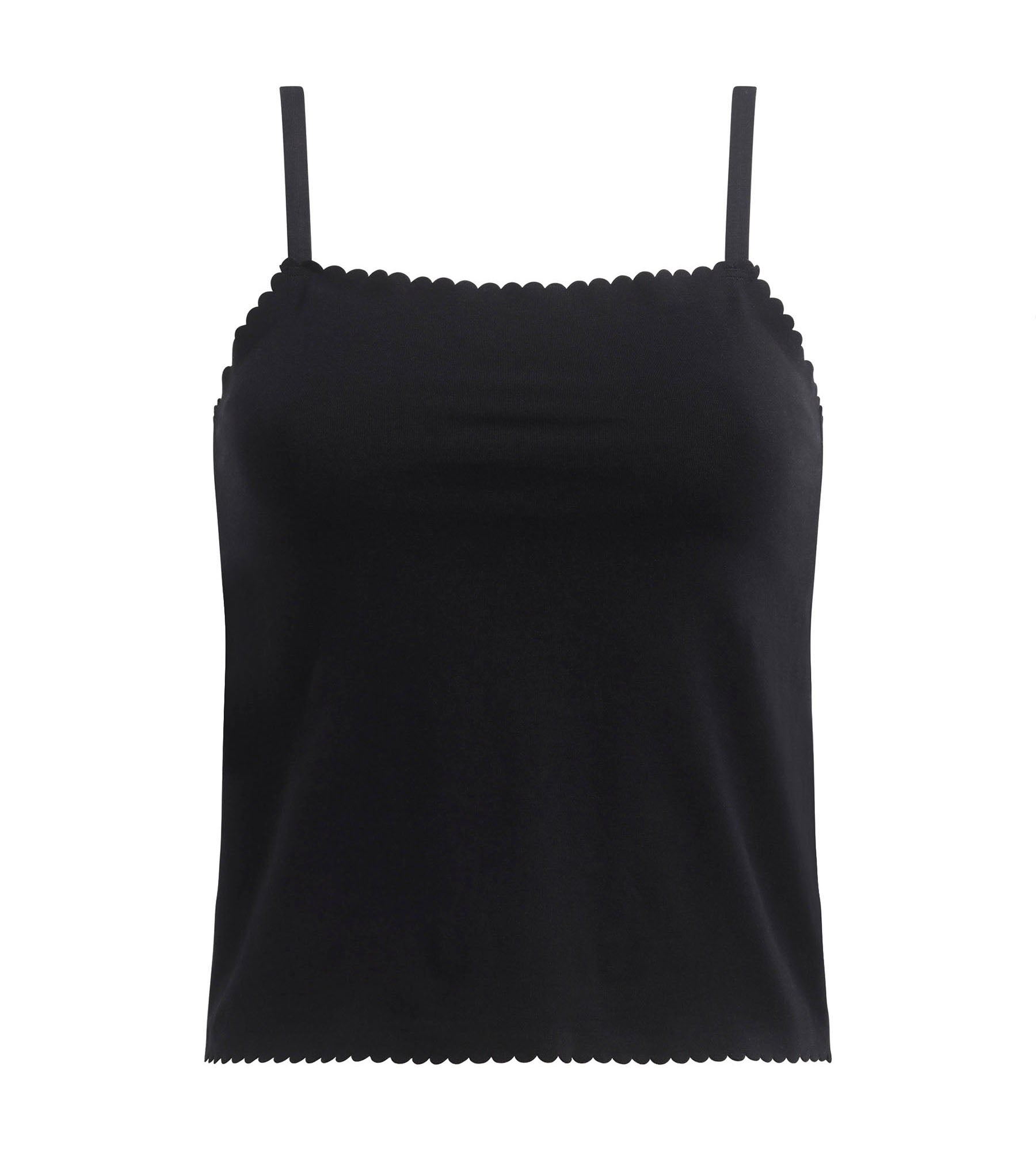 - Il design civettuolo di questo top con spalline sottili e bordi smerlati