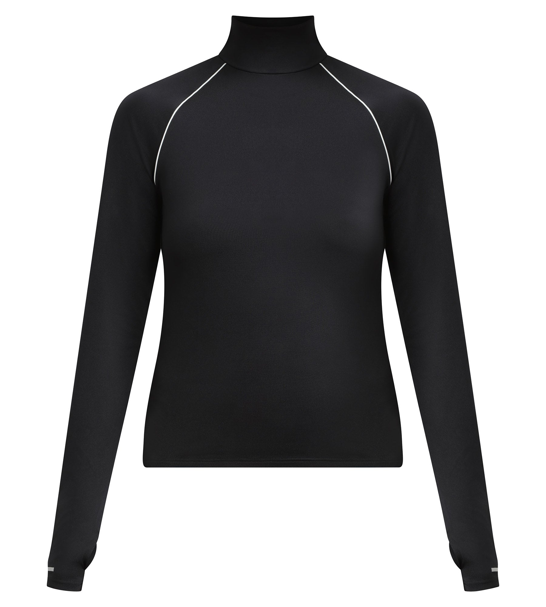 Unisci stile elegante e design ad alte prestazioni con il top sportivo da donna in microfibra nera DIM Move con collo alto!