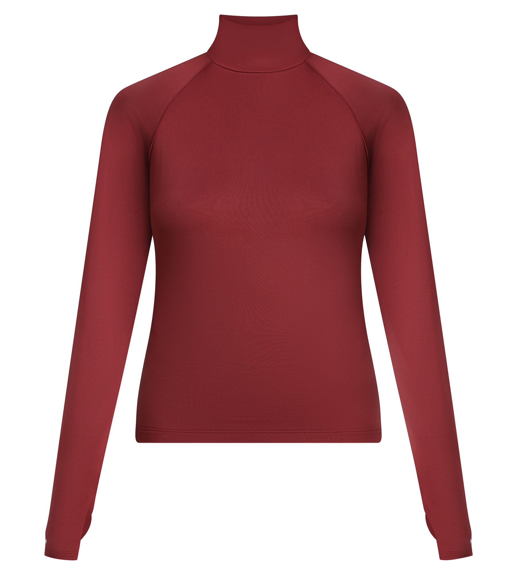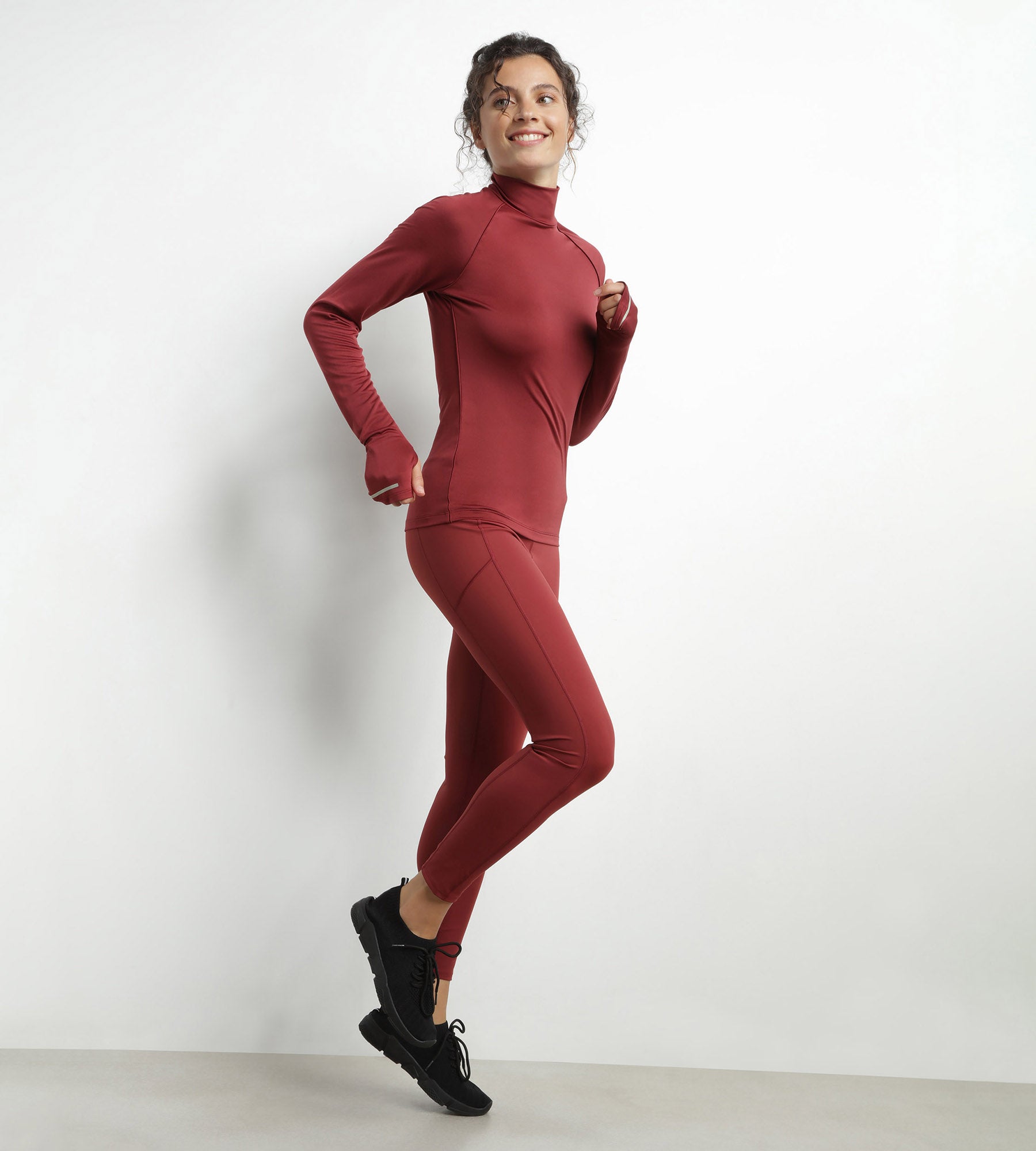 Resta al caldo e visibile con il top sportivo da donna DIM Move in microfibra bordeaux, con collo alto e dettagli riflettenti!