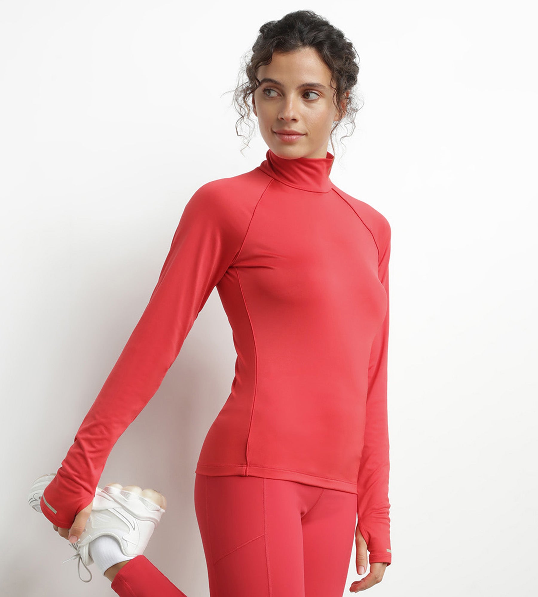 La top sportiva da donna DIM Move con collo alto in microfibra rossa è un'audace performer!