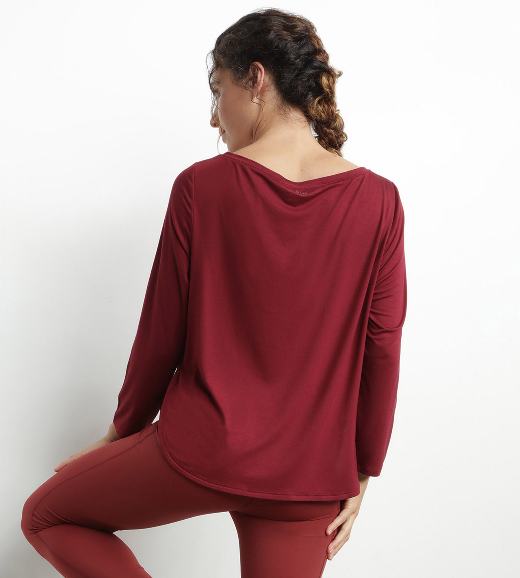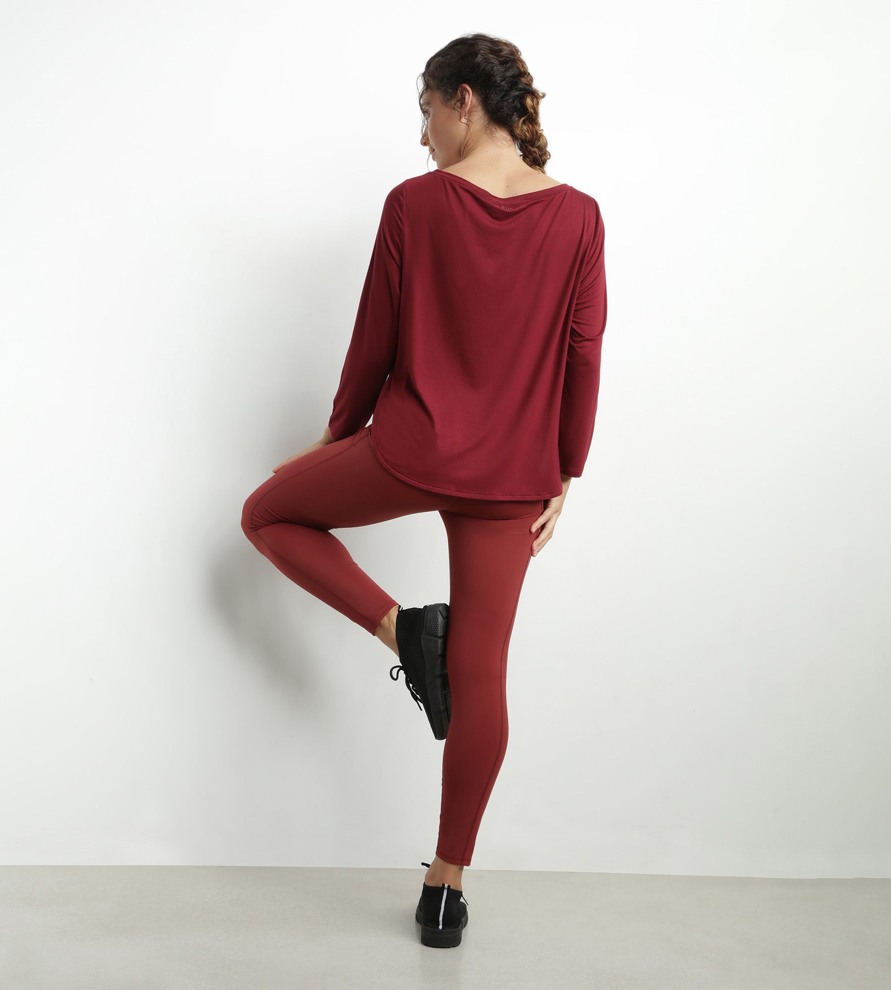 Top sportivo donna con scollo a barca in viscosa bordeaux DIM Move
